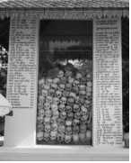 사원의 입구에 들어서자 가이드는 가로와 세로의 길이가 2m 정도 되는 사각기둥 모양의 커다란 유리 상자가 있는 곳으로 안내했다. 그 속에는 배구공 크기의 둥근 것들로 채워져 있었는데 가까이 가보니 온통 해골이었다. 불교 사원을 건축하기 위해 땅을 파다가 발견된 캄보디아인의 시신이라고 한다.