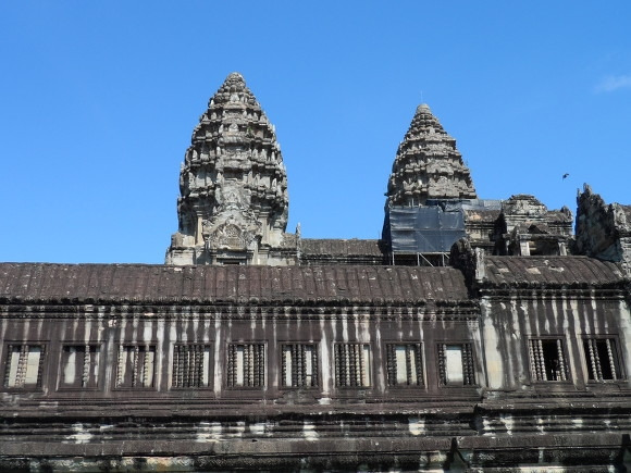 중앙의 탑을 기준으로 하여 건설된 앙코르 왓 사원, 그 외벽을 따라 시설된 복도를 걸었다. 외벽의 높이가 얼마나 되는지 눈여겨보지 못했다. 그 길이도 어디까지인지 끝이 보이지 않는다. 건축 재료는 온통 희뿌연 색상의 바위뿐이다. 나무도 흙도 없이 오로지 일정한 규격으로 다듬어진 바위로만 만들어졌다. 포클레인을 사용해야 들어 올릴 수 있을 만큼 무겁고 큰 바위를 저 높은 곳까지 어떻게 쌓았을까? 감탄사가 저절로 나온다.