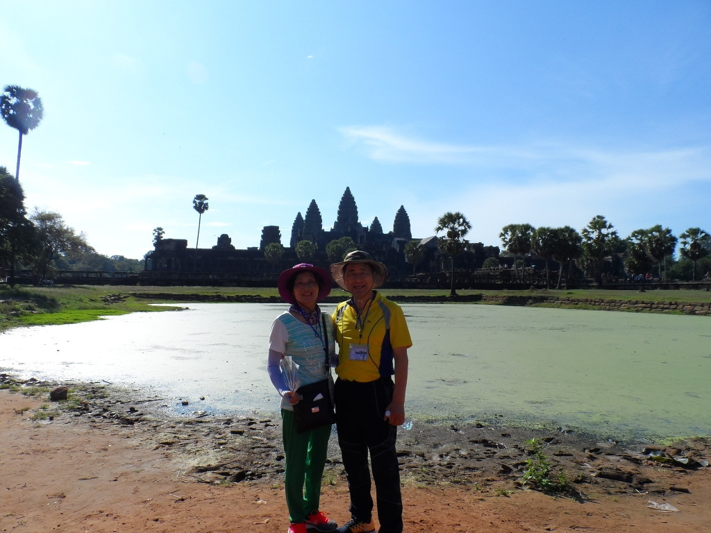 앙코르 사원 돔 다섯 개가 모두 비친다는 연못 앞에서