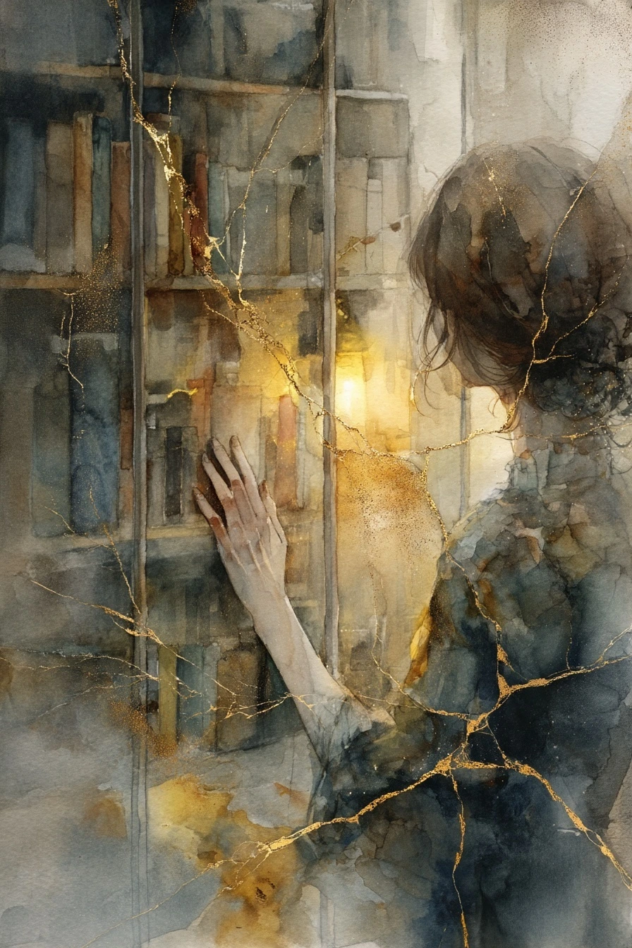 유리장 안 도자기마다 금빛 봉합선이 은은히 반짝였다.