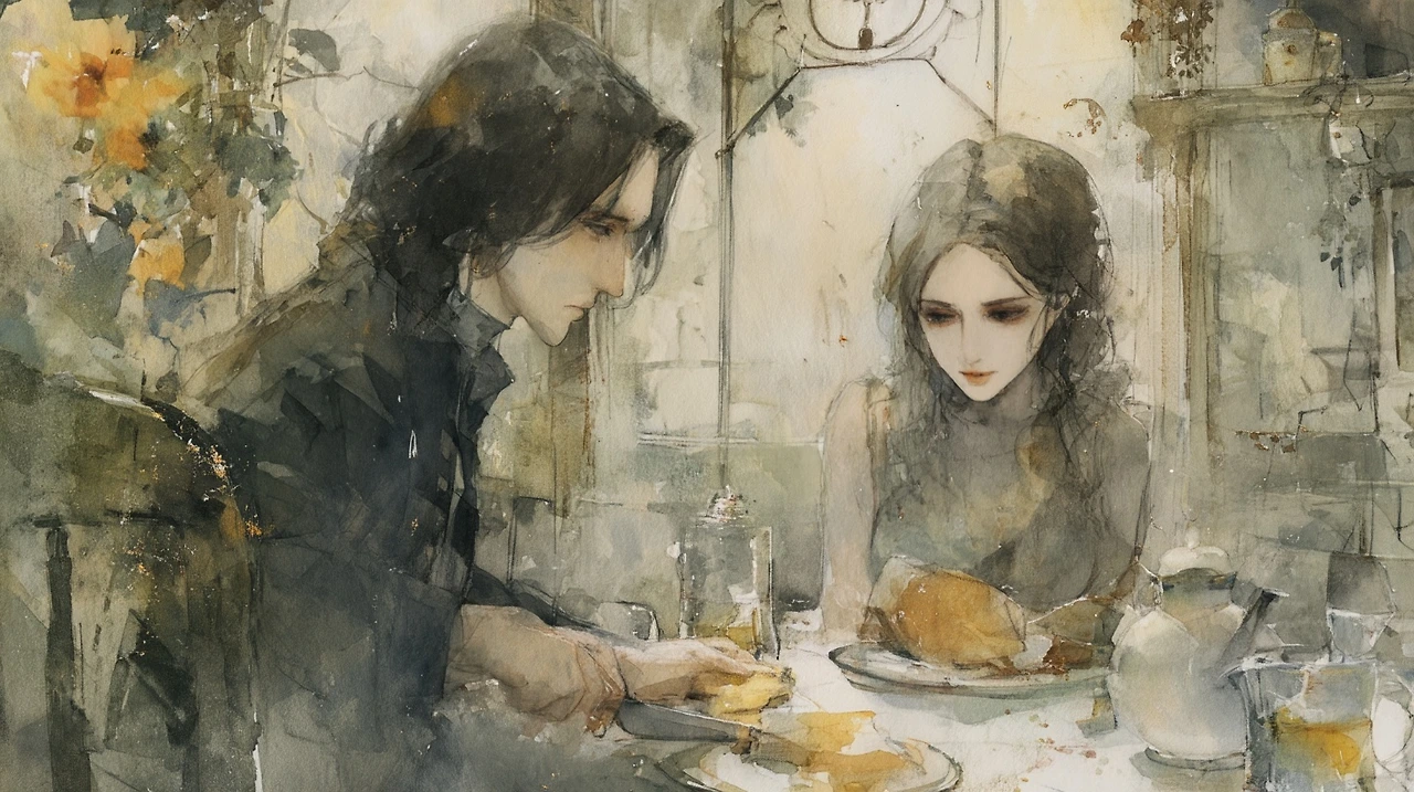 저녁 식탁에서 나이프와 포크 소리가 하루와 하루를 가르는 메트로놈 같았다.