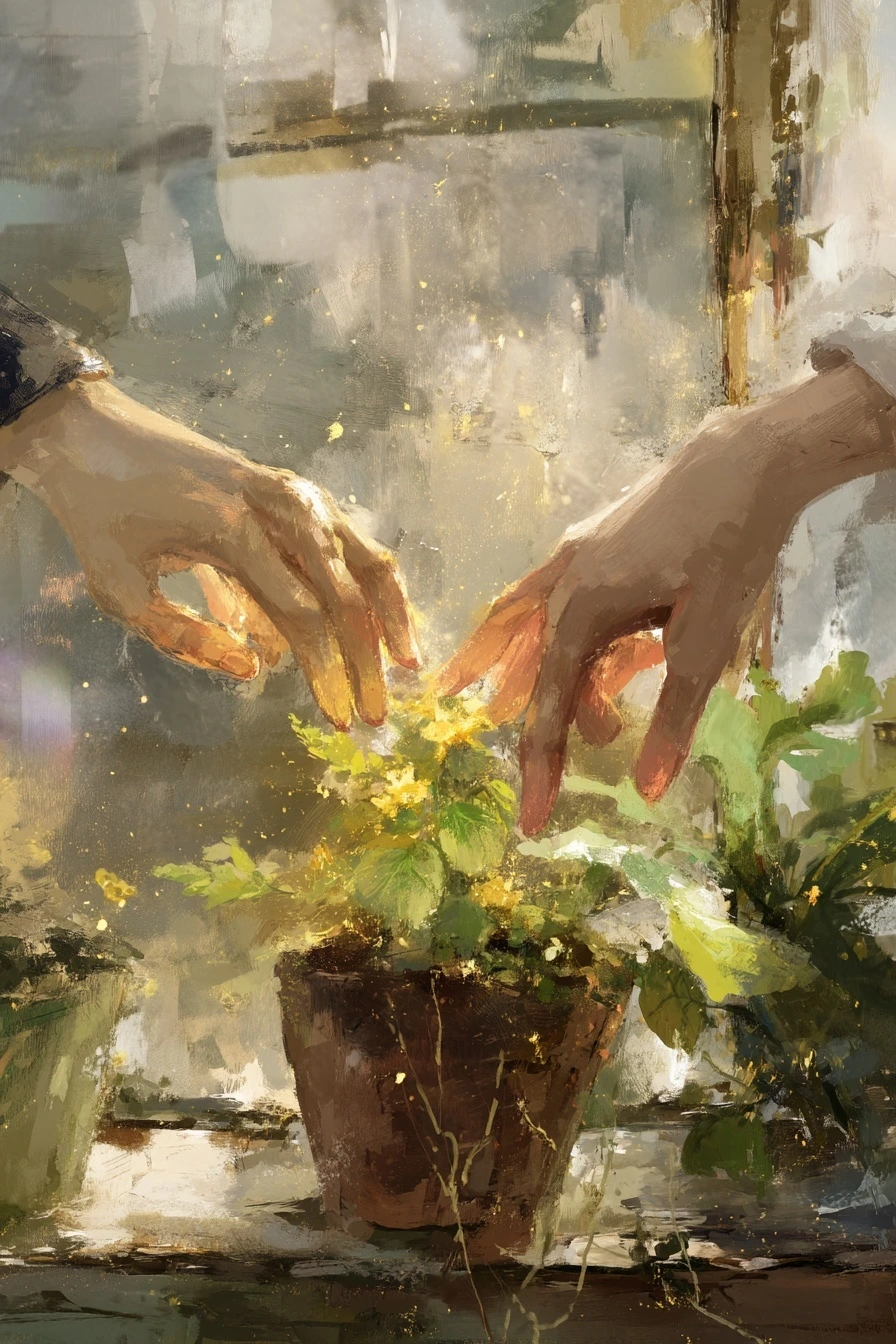 흙이 약간 쏟아지고 잎사귀가 기울었다. 우리의 손은 닿지 않았고, 거의 닿았다. 그 ‘거의’가 심장을 세게 쳤다.