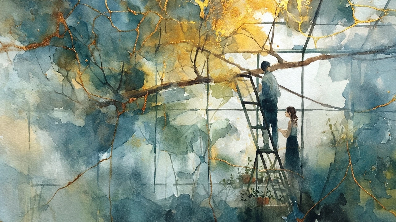 빗방울이 금빛 봉합선을 지나며 잠깐 빛났다. 파손의 증거가 아니라 지속의 모양처럼. 나는 그 모양을 오래 보았다.