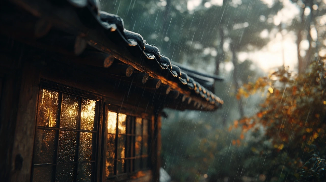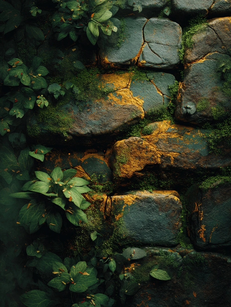 얼마 지나지 않아, 돌담이 눈앞에 나타났다. 빗방울에 젖은 돌은 더 어두운 색을 띠고, 그 사이사이에는 담쟁이가 무겁게 늘어져 있었다. 돌 틈의 이끼는 오래된 문장의 쉼표처럼 고요히 자리했다. 나는 손바닥을 그 위에 얹었다. 차갑고 축축한 감촉이 피부를 타고 흘러내렸다. 그것은 이 집이 나를 받아들이고 있다는 신호 같았다.