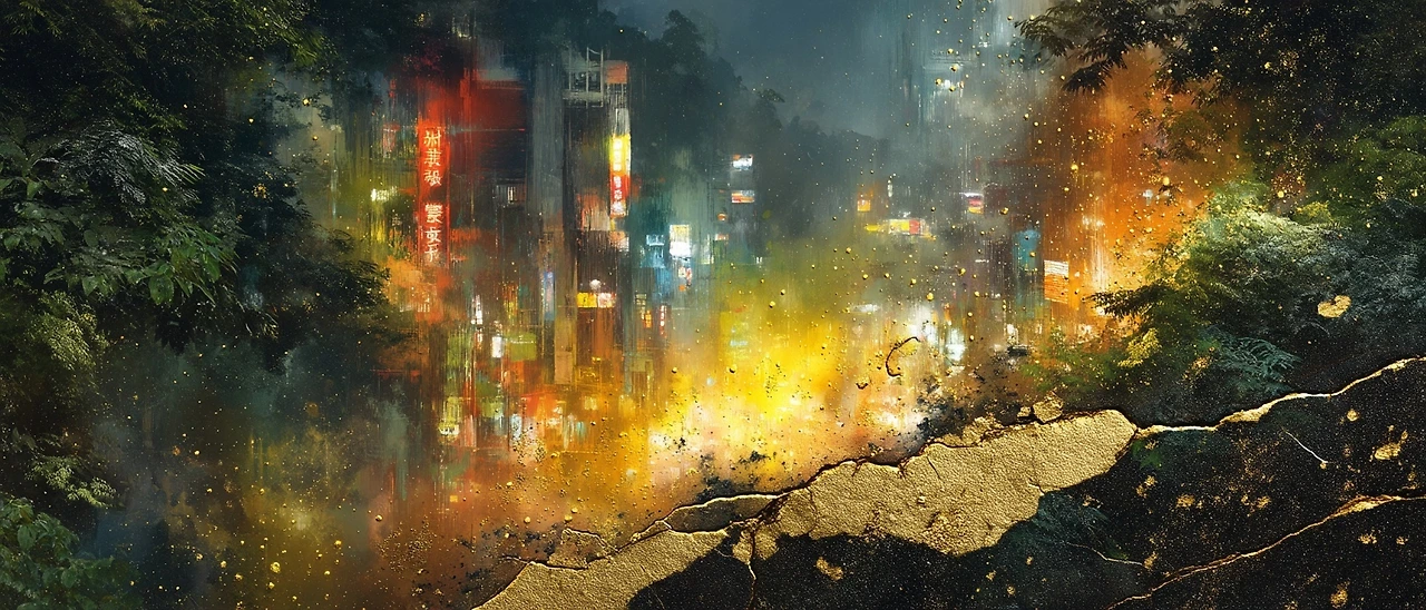 버스가 산허리에 이르자 갑자기 급정거를 했다. 도로 위에 작은 산사태가 일어나 진흙과 돌이 흩어져 있었던 것이다. 운전사는 짧게 욕을 내뱉더니 차를 세우고 밖으로 나갔다. 승객들은 술렁였으나 이내 고요해졌다. 나는 창문에 이마를 기대고 내리는 비를 바라보았다. 빗줄기는 도로 위의 흙을 씻어내며 작은 강줄기를 만들었다. 그 강줄기가 길 위에 금빛 균열처럼 퍼져 나갔다.