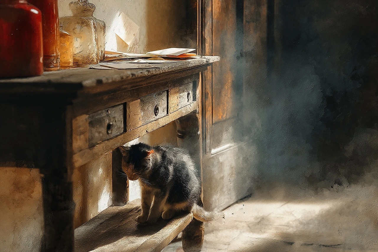 나는 종이를 접어 즉석 봉투를 만들었다. 안쪽에 단 한 문장. ‘열지 않아도, 열릴 때가 있다.’ 고양이가 문틈으로 앞발을 집어넣어 흔들자, 문을 반쯤 열어 주었다. 녀석은 자기 방처럼 들어와 침대에 몸을 말았다.