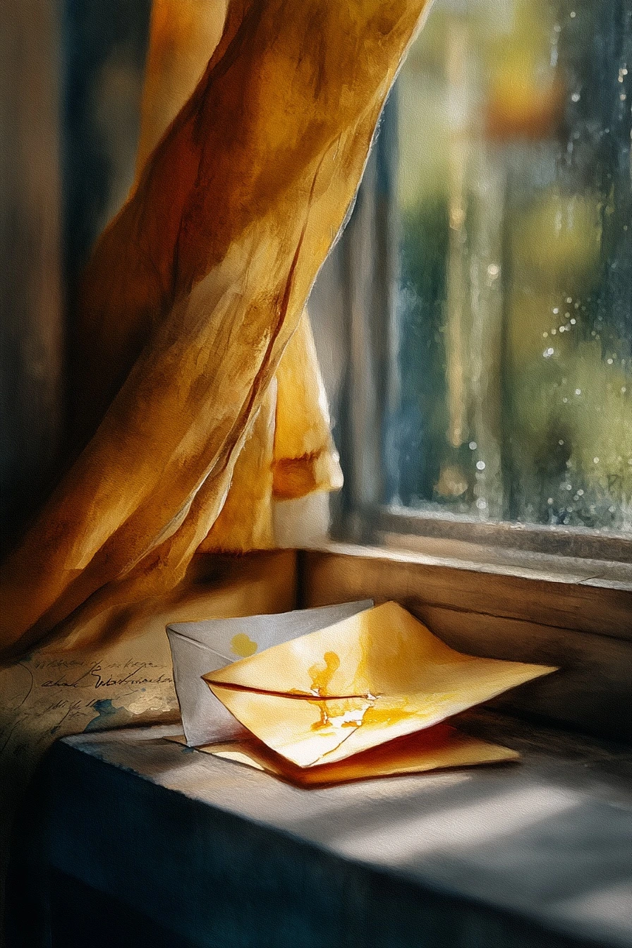 나는 봉투를 들어 모서리를 엄지와 검지로 살짝 눌렀다 놓았다. 그리고 얇은 종이를 꺼내 짧게 적었다. ‘여기 = 금빛이 들어오는 자리.’ 그 종이를 봉투에 끼워, 열지 않은 것 옆에 열린 것을 나란히 눕혔다. 둘은 서로의 해석이자, 보류였다.