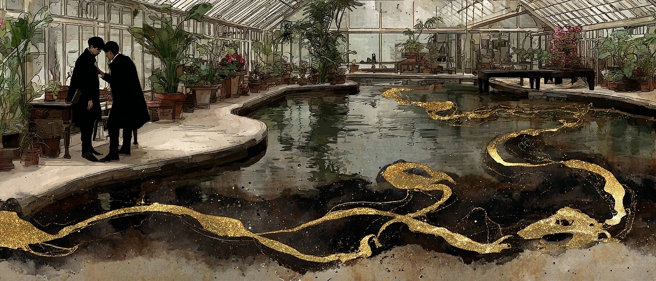 작은 연못 앞에 섰다. 수면 위에 온실의 윤곽이 비쳤다. 금빛 균열이 물 위로 얇게 흩어졌다. “여기서 보면, 금빛이 물속에 들어가는 것처럼 보여요.” 내가 말했다. “어쩌면 우리가 안쪽이고, 저게 진짜일 수도 있죠.” 지훈은 연못의 반사를 바라봤다. 그가 나를 직접 보지 않아도, 나의 얼굴이 그의 눈 속에서 흔들리는 것을 보았다. 내가 어딘가로 미세하게 기울고 있음을 자각했다. 무너지지는 않았지만, 분명 기울었다. 기울어진 사물은 작은 바람에도 흔들린다. 그리고 그 흔들림 속에서 살아 있다는 감각이 더 진해졌다.