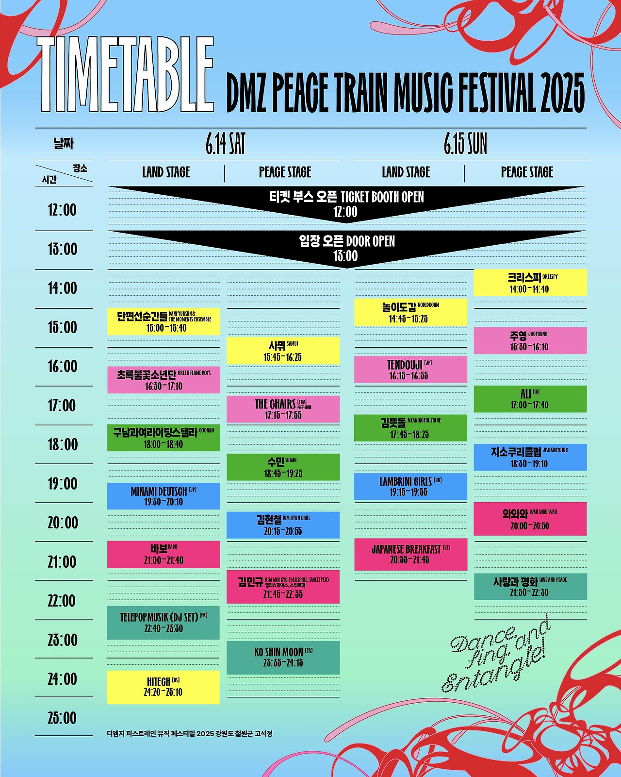 DMZ 피스트레인 페스티벌은 김사월×김해원 노동당사 무대를 통해 처음 알게 됐다. 그때의 무대가 2회차였다. 직접 가서 보지는 못했지만 페스티벌치고 분위기가 상당히 서늘했고 공간 역시 의미가 많이 중첩되어 있는 곳이라 여기는 뭔가 좀 다르다는 느낌을 받았다. 그때는 사라졌지만(사라졌나?) 지산 락페처럼 외진 곳에 경관 좋은 목을 잡은 점이 달랐고, 관중은 펜타포트나 서울시내에서 하는 페스티벌들처럼 다수 청중과 거리가 있어보여 달랐다. DMZ라는 명명 역시 존재하지 않던 것이었다. 이전까지의 이름난 페스티벌의 작명이란 대개 지명(인천,부산,지산)을 따르거나, 장르(재즈페스티벌, 락페스티벌)에 국한되는 편이었는데 한 가지 생각으로 끝나지 않는 단어가, 장소가 선택된 점이 남달랐다. 김김 때 갔다면 아주 좋았겠지만(이후로 김김의 무대는 볼 수가 없었거니와...) 차 없이 가기에 철원은 너무 멀었고 숙소 잡고 놀만큼 여유 있는 편도 아니었으며 그럴 친구 역시 없었기에 갈법하지 않았다. 그저 해마다 라인업을 예의주시하고 후기 영상 같은 것들이 타임라인에 스치는 것을 보며 부러워했을뿐. 그러나 부러워하지 않고 예전에 지산에 갔을 때처럼 밤에 버스 타고 어디 찜질방에 자고 하며 다녔으면 아마 다 볼 수는 있었을지도 모른다. DMZ 관중들이 잘 논다는 평가를 받는 이유도 다른 데서 찾을 필요 없이 이만한 수고를 감수할 수 있는 사람들만 모이는 데에 있을 것이다. 최소 장시간의 운전, 최대 어려운 숙박과 귀가. 거기에 장시간의 슬램,떼창,락놀이를 즐길 체력까지...