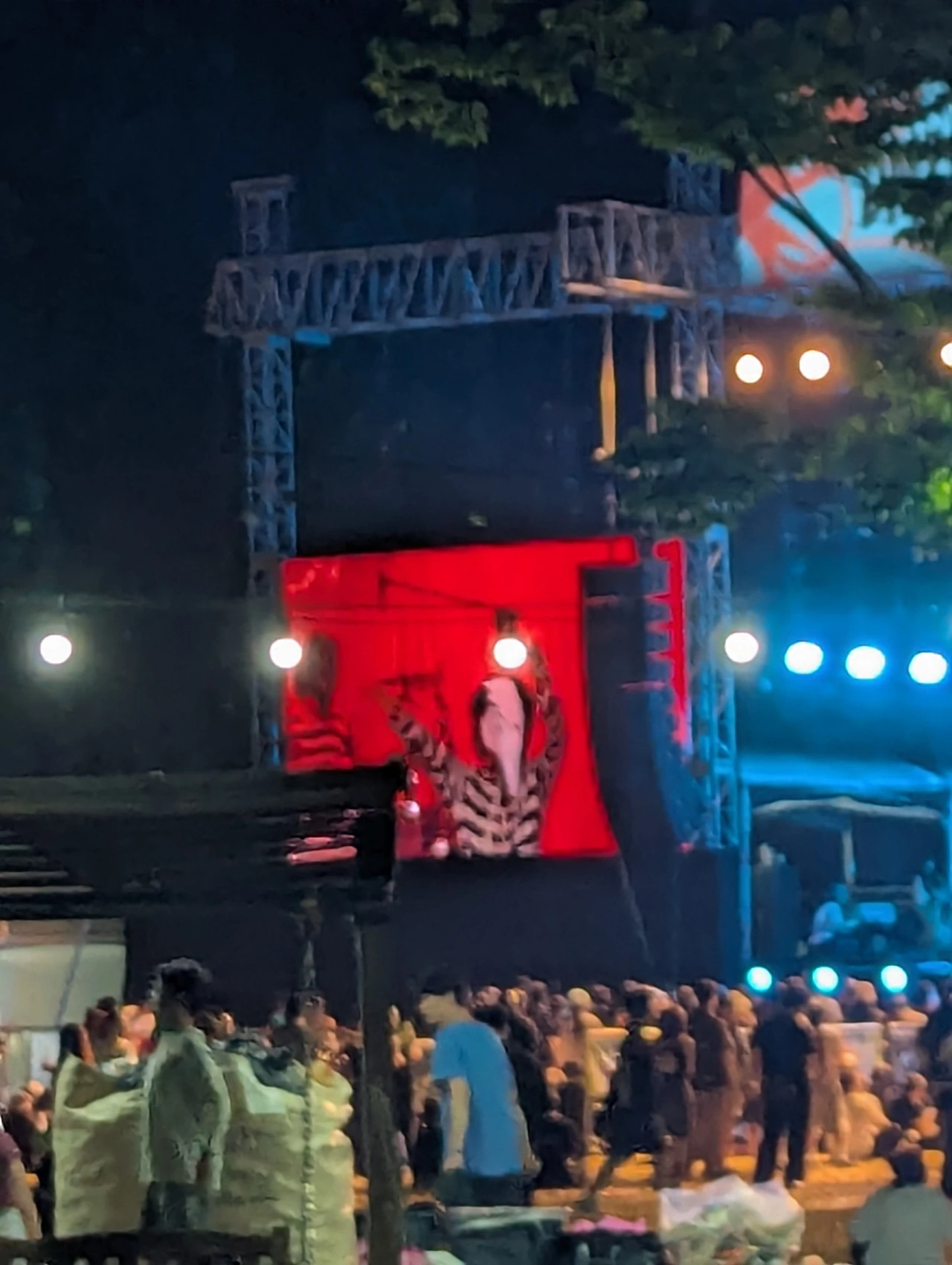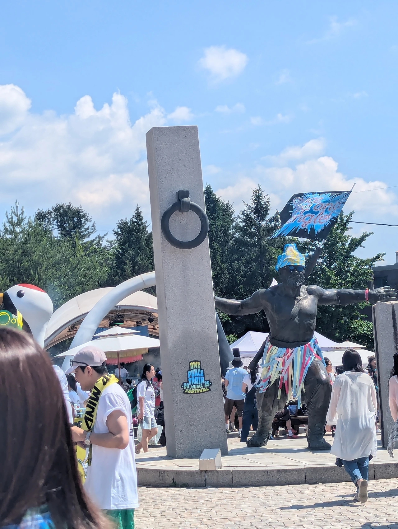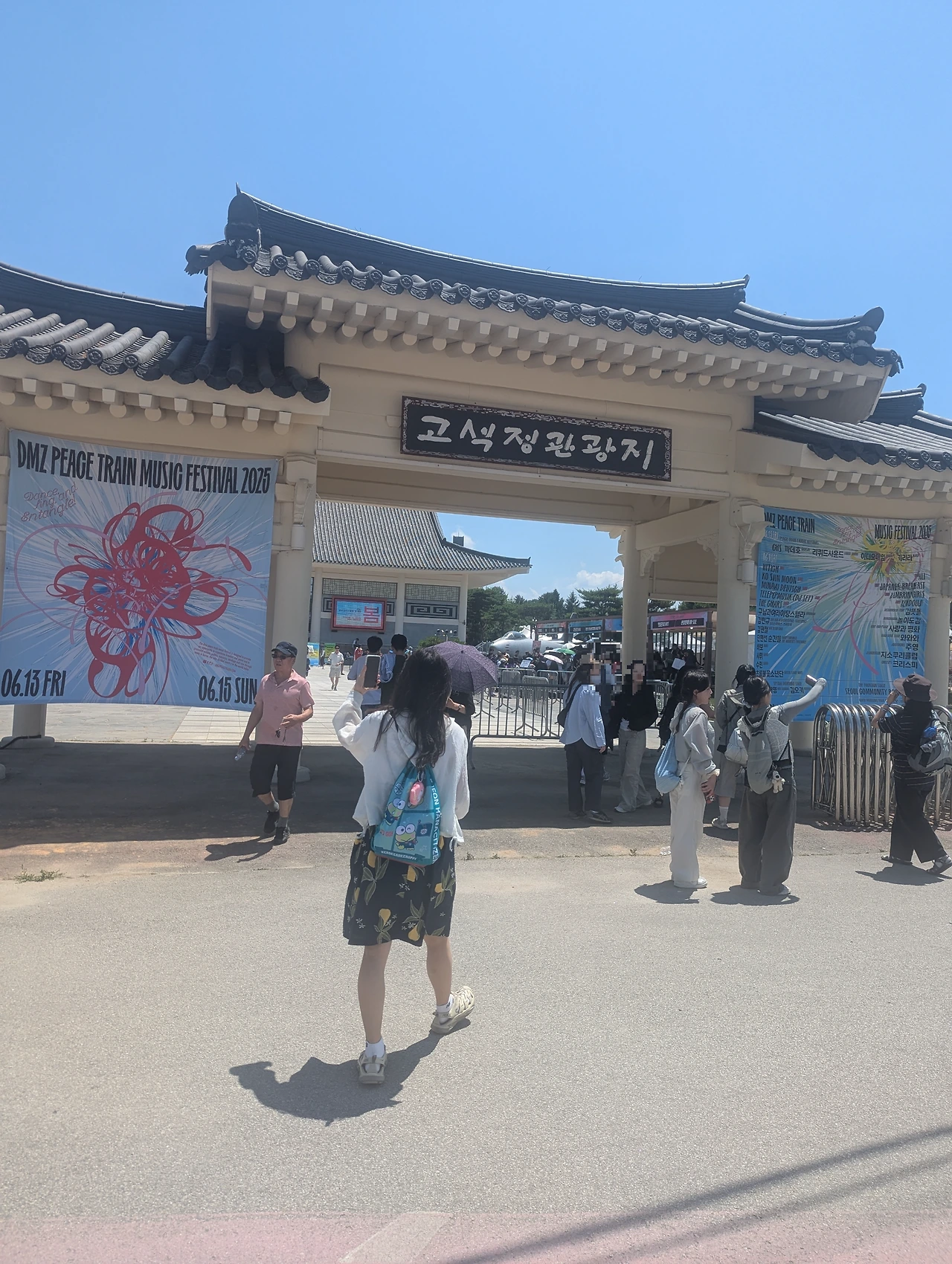 티켓 받고 고석정 들어가니 임꺽정 동상이 매우 힙한 복장을 하고 서 있었고 사람들이 줄을 서서 그와 사진을 찍고 있었다. 명종대의 그냥 도적이지만 미디어의 윤색으로 나름의 하입이 생긴 인물로 그 자리에 있는 동상은 간지났다. 매우. 바로 앞에 굿즈샵 있었는데 라인업 티셔츠는 다 나가고 없었고 다음날에도 구할 수 없었다.