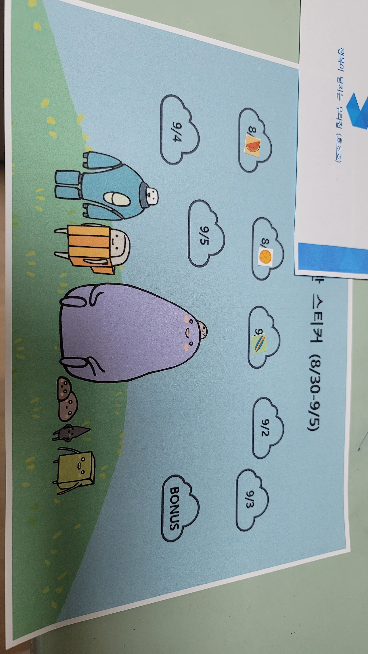 5. 7회 이상 학습을 해서 스티커를 붙인 칭찬 종이를 4장 모으면 마음대로 쓸 수 있는 용돈 5000원을 추가로 제공한다.