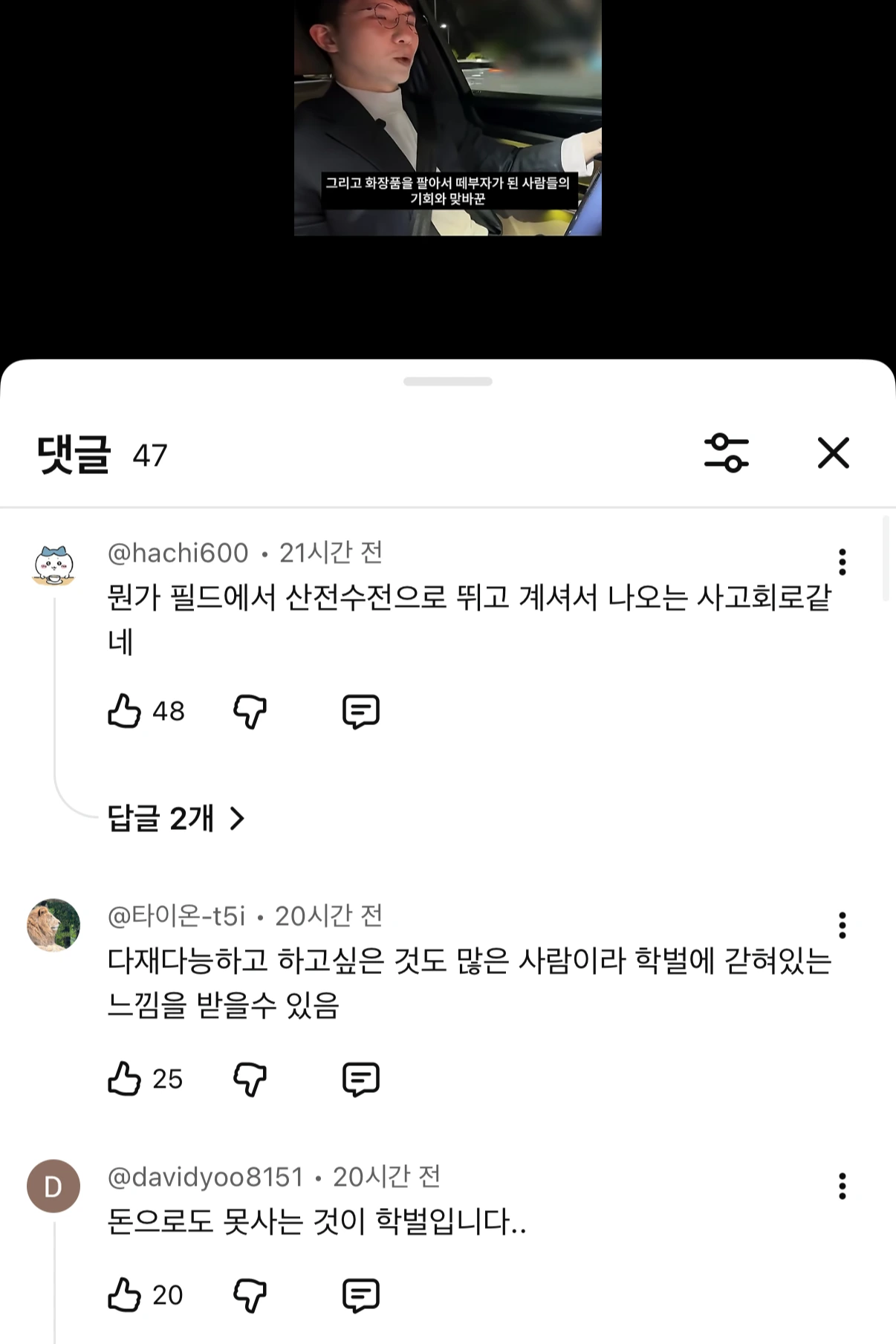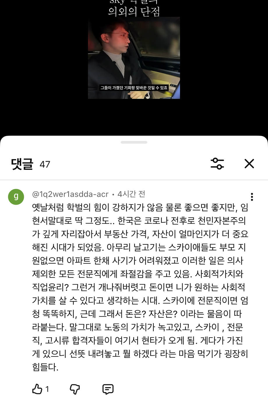 “그래도 너는 좋은 대학 나왔으니까 잘 살잖아.”