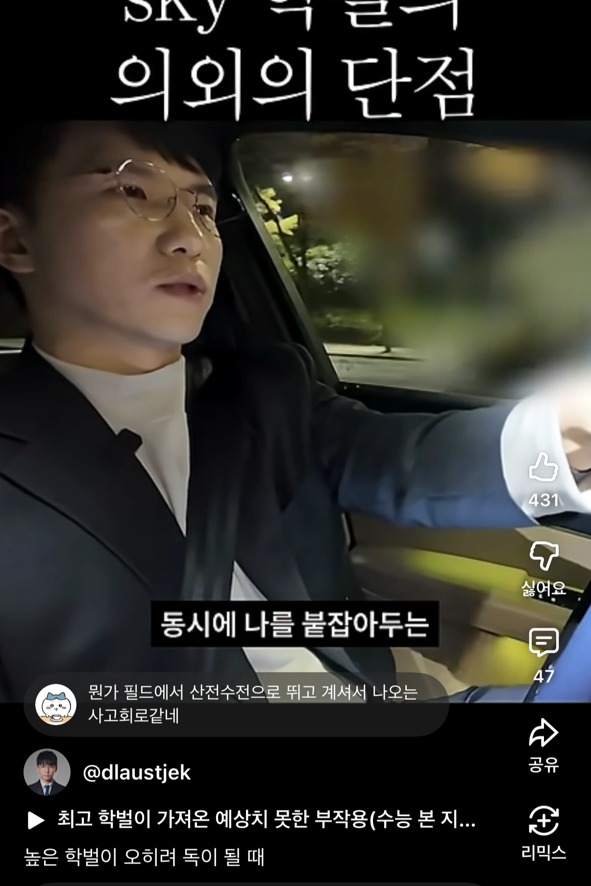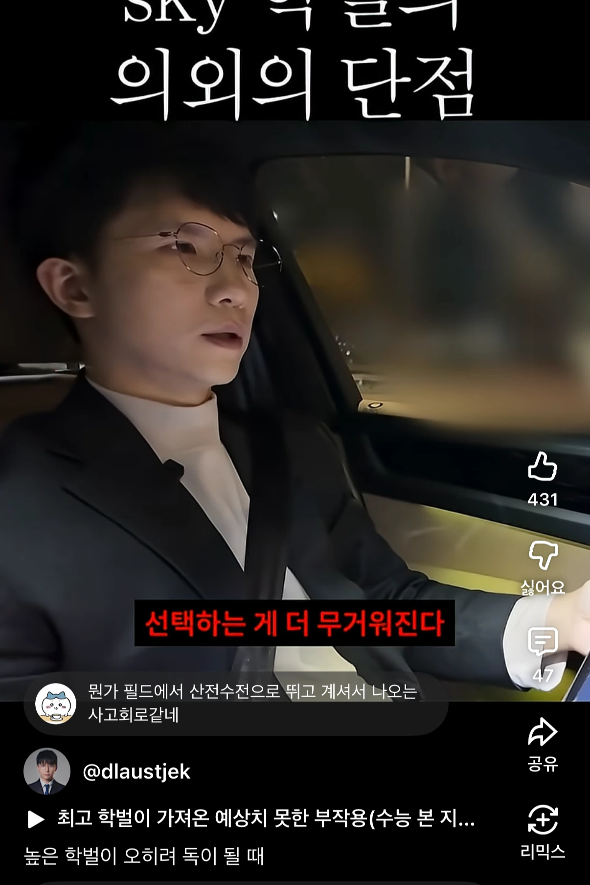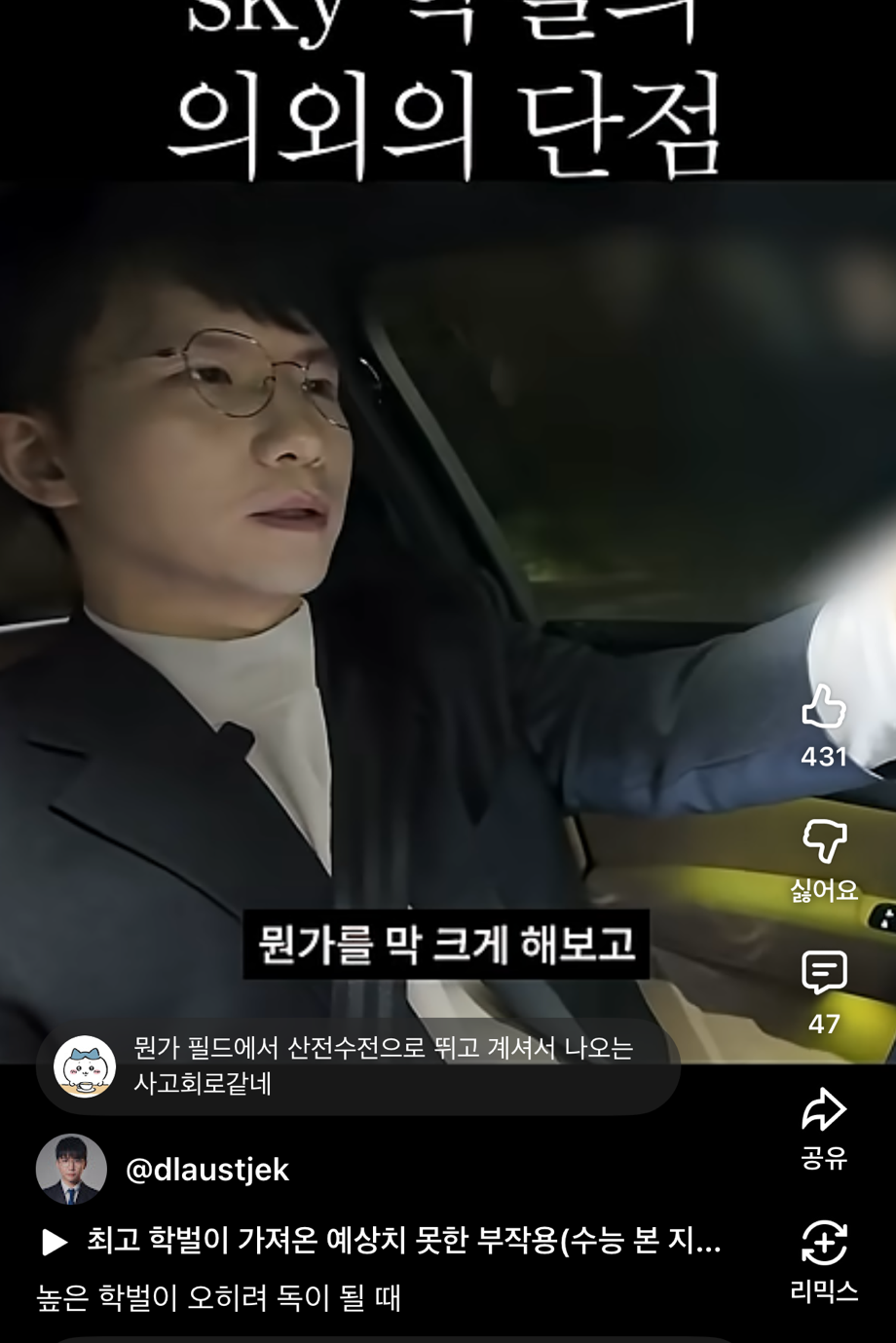 나는 스카이·서연고 출신 친구들을 보면서 같은 패턴을 자주 봤다.