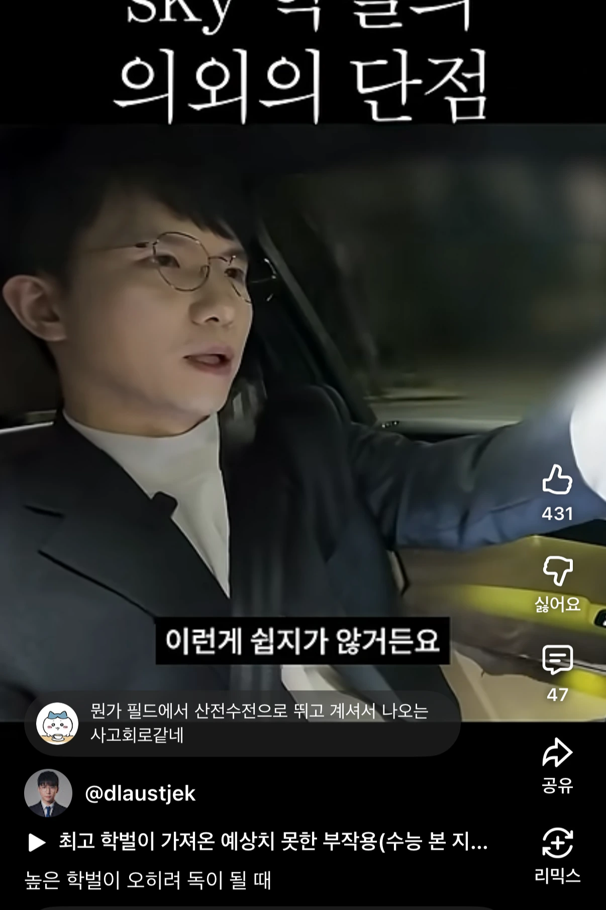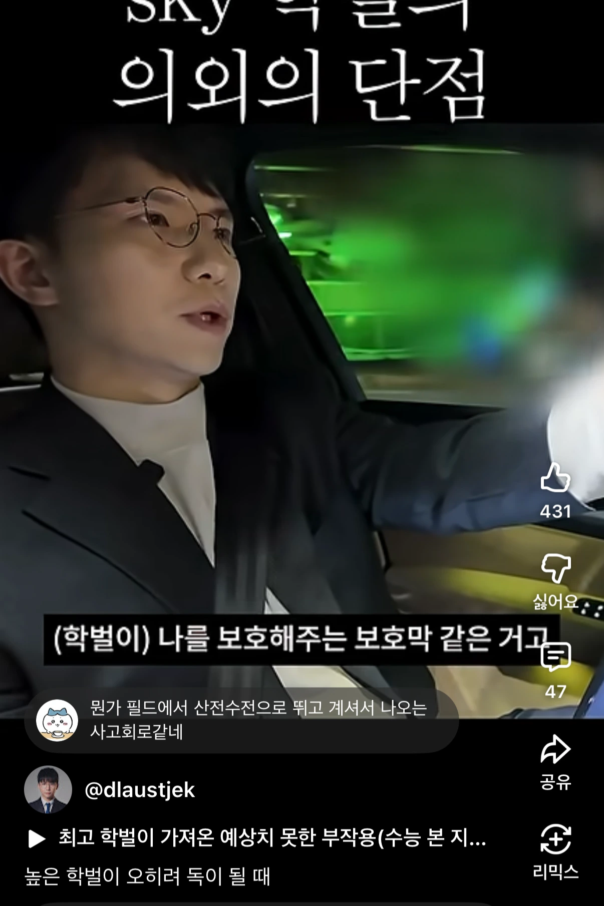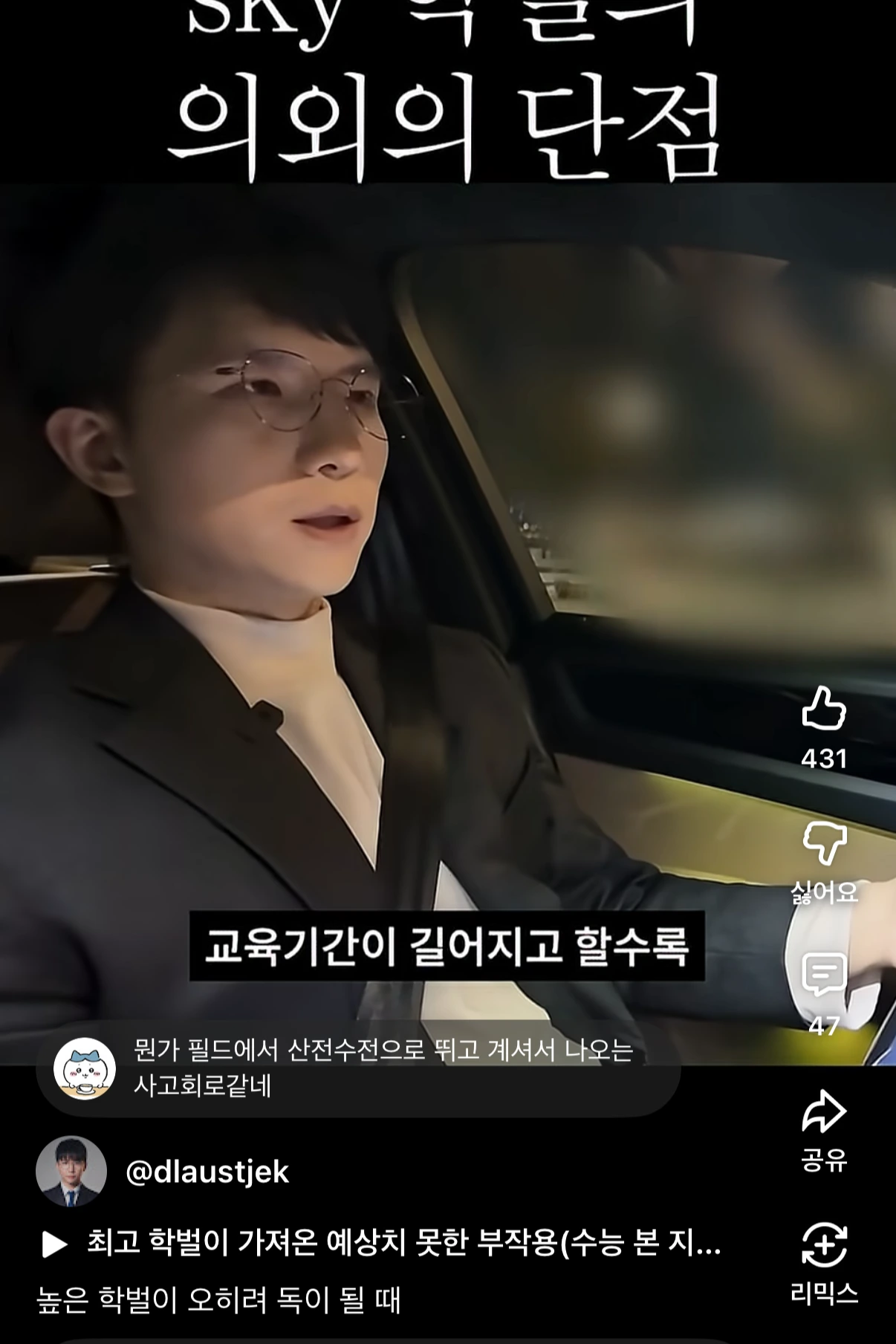 나는 스카이·서연고 출신 친구들을 보면서 같은 패턴을 자주 봤다.