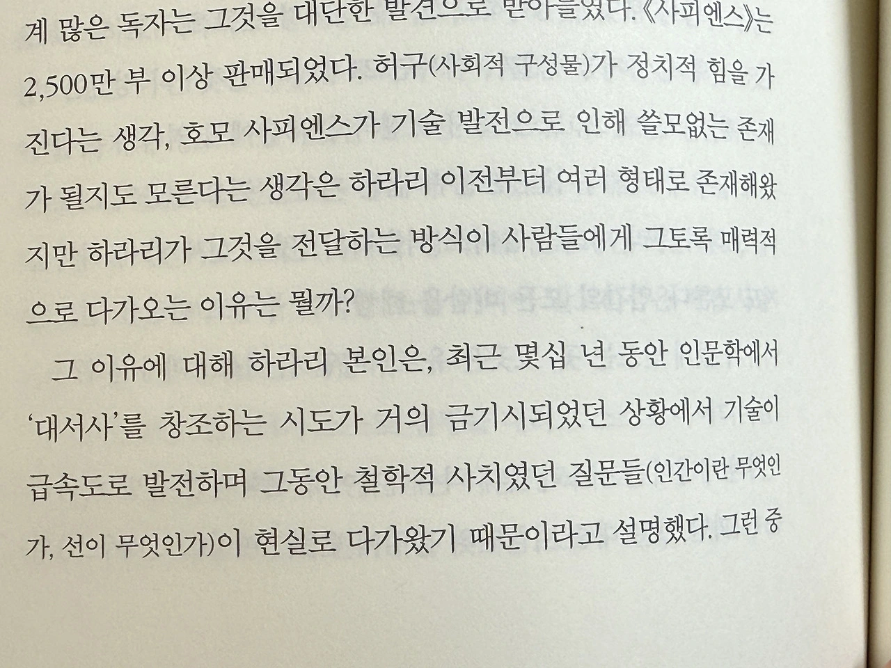 사피엔스가 왜 그렇게 매혹적인가를 설명한 부분을 읽을 때
