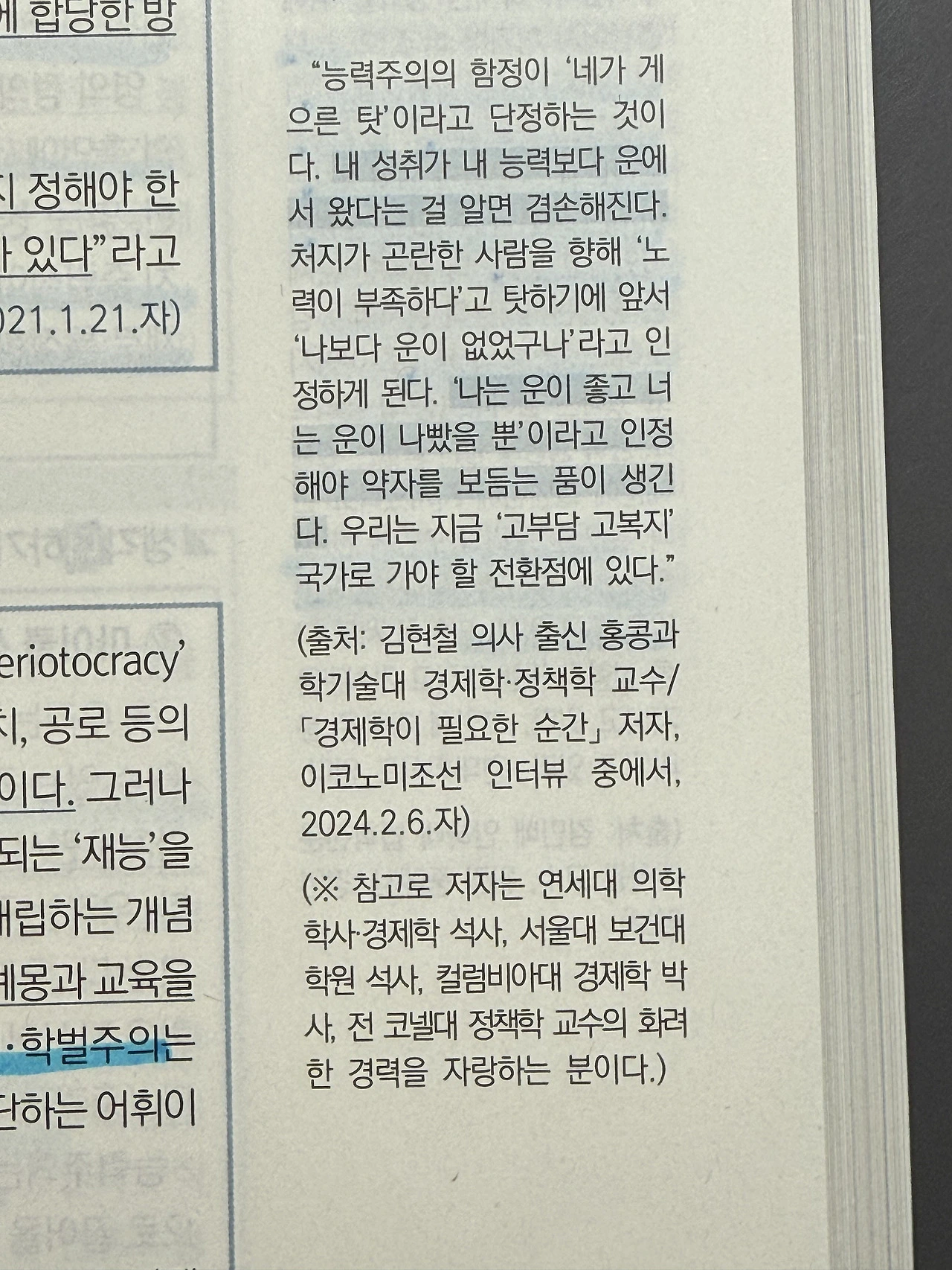 능력주의를 의심하는 김현철 교수님의 이야기를 접하고 나니