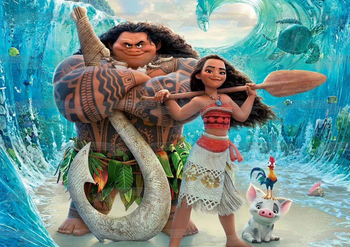 디즈니 영화 모아나에서 나오는 마우이 (왼쪽)는 큰 갈고리를 가지고 다닌다. 출처: 구글