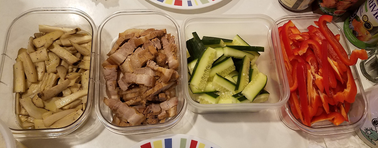사 먹는 음식들을 맛있지만 야채가 들어간 음식들은 많이 없다. 싱싱한 야채들을 맛있게 먹고 싶어서 부모님께서 아침으로 즐겨 드시는 월남쌈을 도전해보았다. 냉장고에 있는 재료들을 먹기 좋은 크기들로 썰어준다. 피망, 버섯, 오이, 방울토마토, 양배추 등을 추천한다. 메인 재료로는 수육, 새우, 그리고 버섯을 추천한다. 특히 버섯을 올리브유에 살짝 볶은 뒤 월남쌈에 넣어먹으면 식감이 매우 훌륭하다.