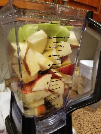 사과가 밑으로 가라앉기 때문에 주스에 따르기 전에 꼭 잘 흔들어주어야 한다!