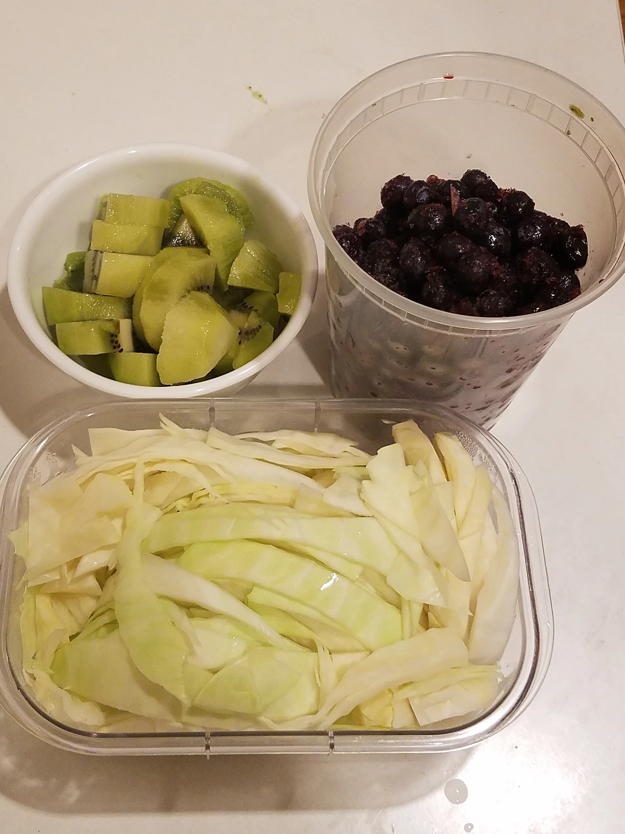 스트레스로 지친 위를 보호하고 슈퍼푸드 블루베리를 같이 먹을 수 있는 방법! 양배추는 잘 세척한 뒤 잘게 썰어 용기에 넣은 뒤 물을 두 스푼 정도 넣고 전자레인지에 2분간 데워준다 (이때 양배추를 너무 크게 썰면 다 익지 않아 주스가 매울 수 있으니 적당히 얇게 썰어야 한다.) 키위는 먹기 좋은 크기로 썰어준다. 냉동 블루베리와 양배추와 키위를 믹서기에 넣은 뒤 재료가 잠길 만큼 물을 부은 뒤 믹서기로 곱게 갈아준다. 개인적인 생각으로 키위를 더 추가하거나 냉동 블루베리 대신 생 블루베리를 넣으면 단맛이 더 강해지는 듯하다. (고로 더 맛있어진다. ^^) 완성된 주스는 용기에 담아 냉장 보관한다.