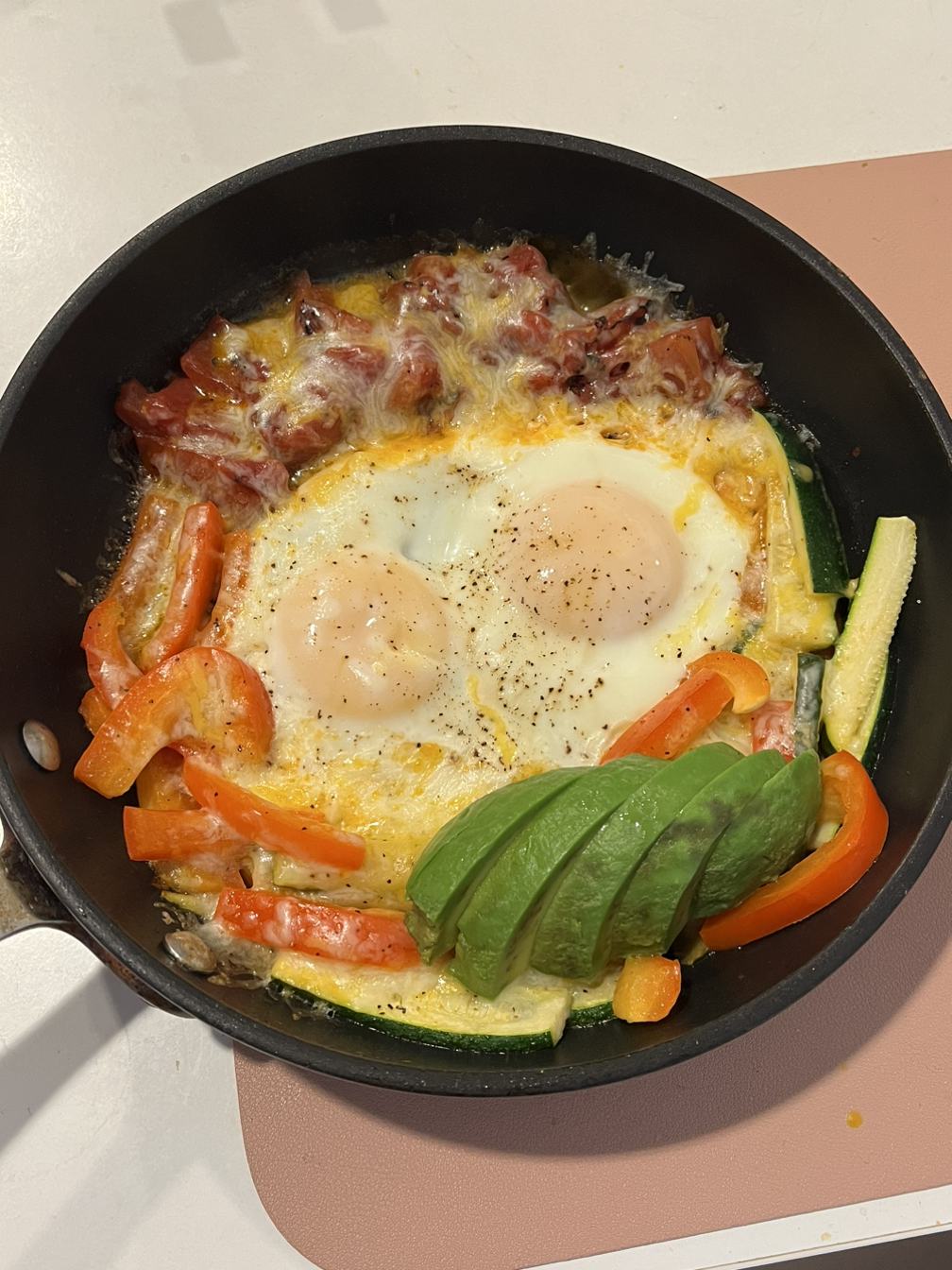 먹기 직전 취향대로 파마잔 치즈나 좋아하는 치즈를 뿌려주기만 하면 됩니다. 잘 익은 아보카도가 있을 때면 그냥 썰어서 함께 먹거나 혹은 으깬 뒤 소금과 라임, 그리고 실란트로만 넣어 간단한 구아카몰리를 만들어 먹기도 합니다. 이렇게 만드는 샥슈카는 먹을 때마다 마치 멋진 곳으로 휴가를 와서 즐기는 아침 식사 같아 제게 굉장히 큰 행복을 선물해 줍니다. 직접 해 먹을 수 있음에 감사함도 느낄 수 있습니다. 행복과 감사는 하늘과 구름, 봄과 꽃처럼 함께 하면 더욱 좋은 한쌍이지요.