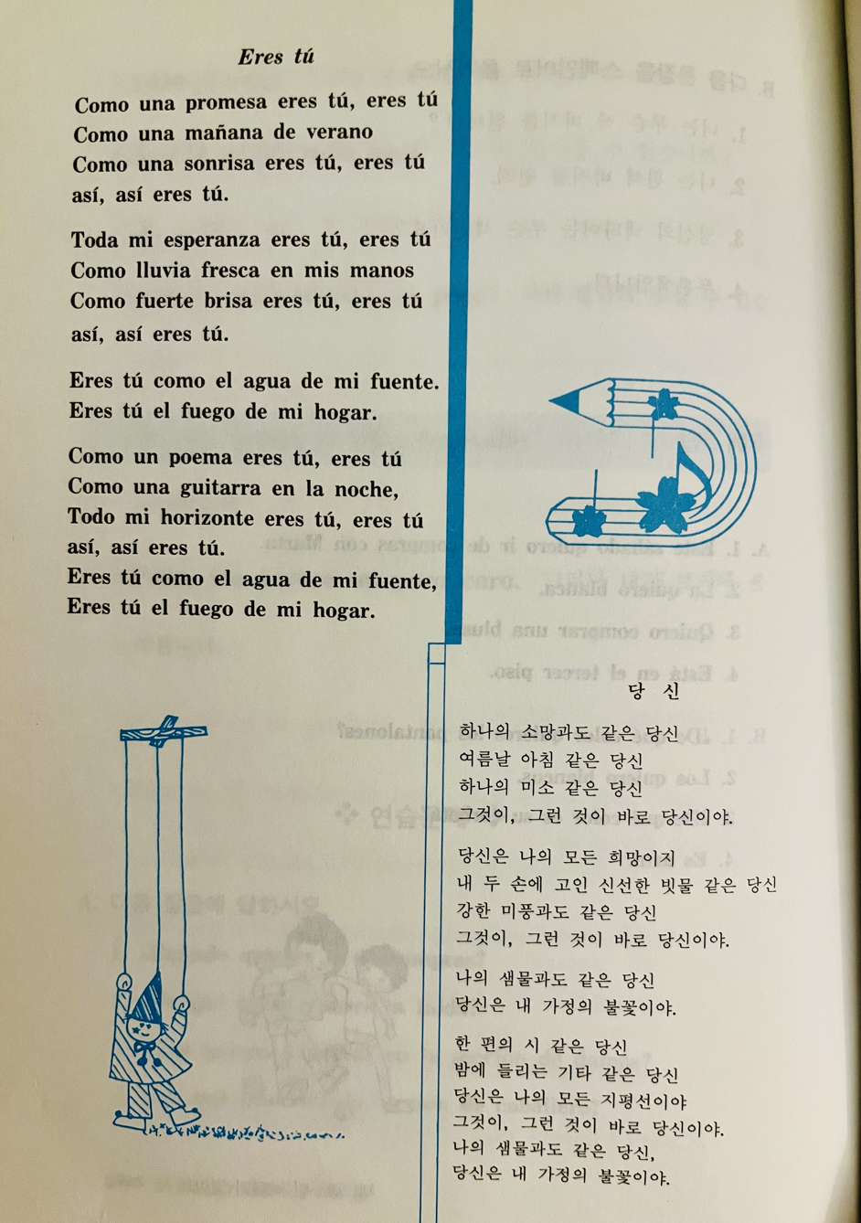 단순하고 쉬운 단어들로 만들어진 이 아름다운 시가 궁금해 찾아보니 Mocedades의 <Eres Tú>라는 아주 유명한 노래의 가사였네요. ^^ 여러 나라에서 리메이크도 되고 우리나라에서도 <그대 있는 곳까지>로 많이 알려져 있습니다.