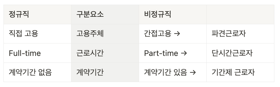 - 도급 : 수급인(파견업체)이 직접 근로자를 고용하고, 수급인(용역업체)가 업무에 대한 지휘 및 명령을 하며 도급인(기업)과 계약한 업무를 완료하는 것입니다.