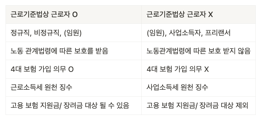 ⇒ 근로기준법, 근로자 퇴직급여보장법 등 일부 법령 적용 x