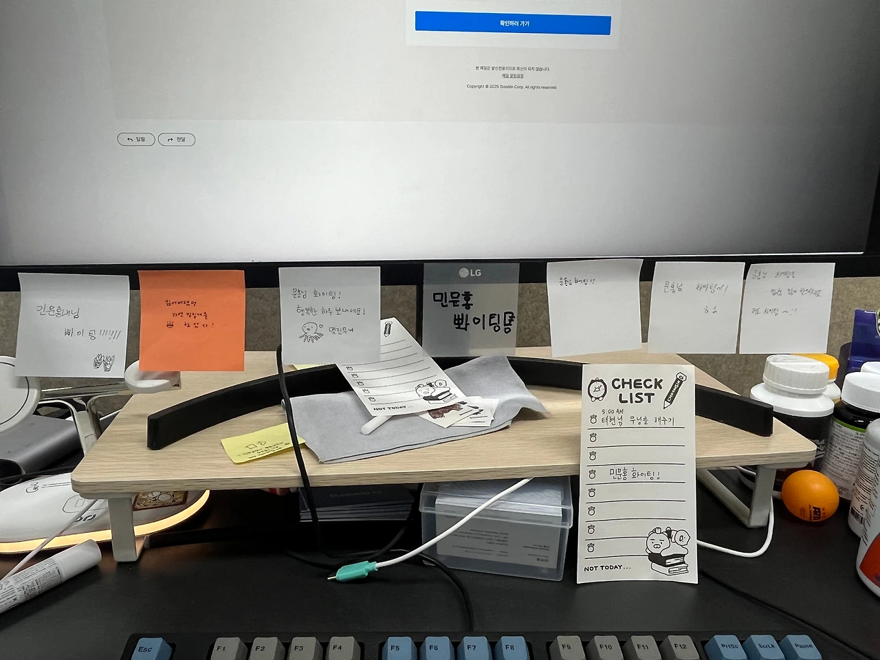 모니터나 책상에 늘어난 응원 포스트잇이 저를 기다리고 있었습니다.