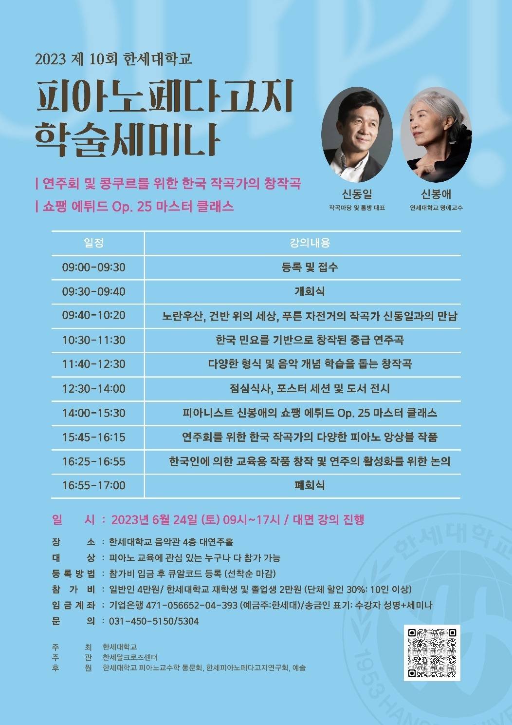 한세대학교 피아노페다고지 학과의 학술 세미나에서 <노란우산, 건반 위의 작은 세상, 푸른자전거의 작곡가 신동일과의 만남> 순서를 갖게 되어, 유승지 교수와의 대담 형식으로 인터뷰와 대학원 학생들이 발췌 연주를 엮어서 진행하는 의미 있는 행사가 있었다. 오랜만에 학창시절 이야기, 내밀한 음악 이야기 등을 하게 되었고, 대학원생들의 깔끔한 연주도 좋았다.
