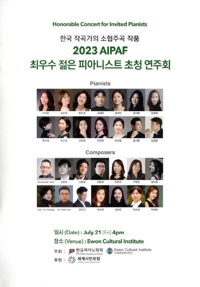 7.21 천안 이원문화원 AIPAF 한국작곡가의 초연작품 2023 최우수 젊은 피아니스트 초청 연주회