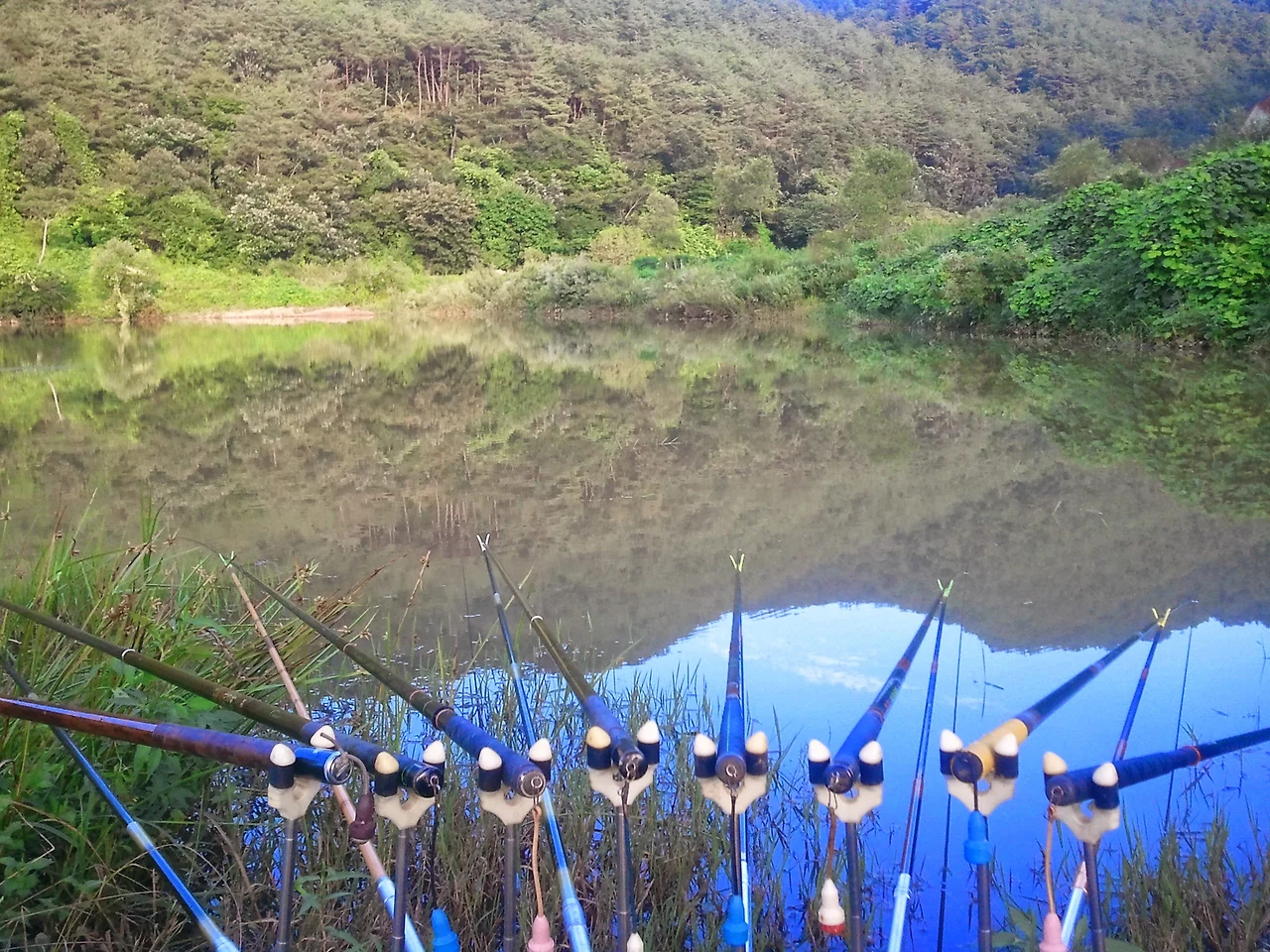 토요일 오후 낚시 장비를 챙겨 풍광 좋은 저수지에서 밤새 손맛을 보고 오는 것도 좋았고 낚시 중간에 새참으로 먹는 삼겹살과 소주의 유혹도 뿌리치기 힘들었다.