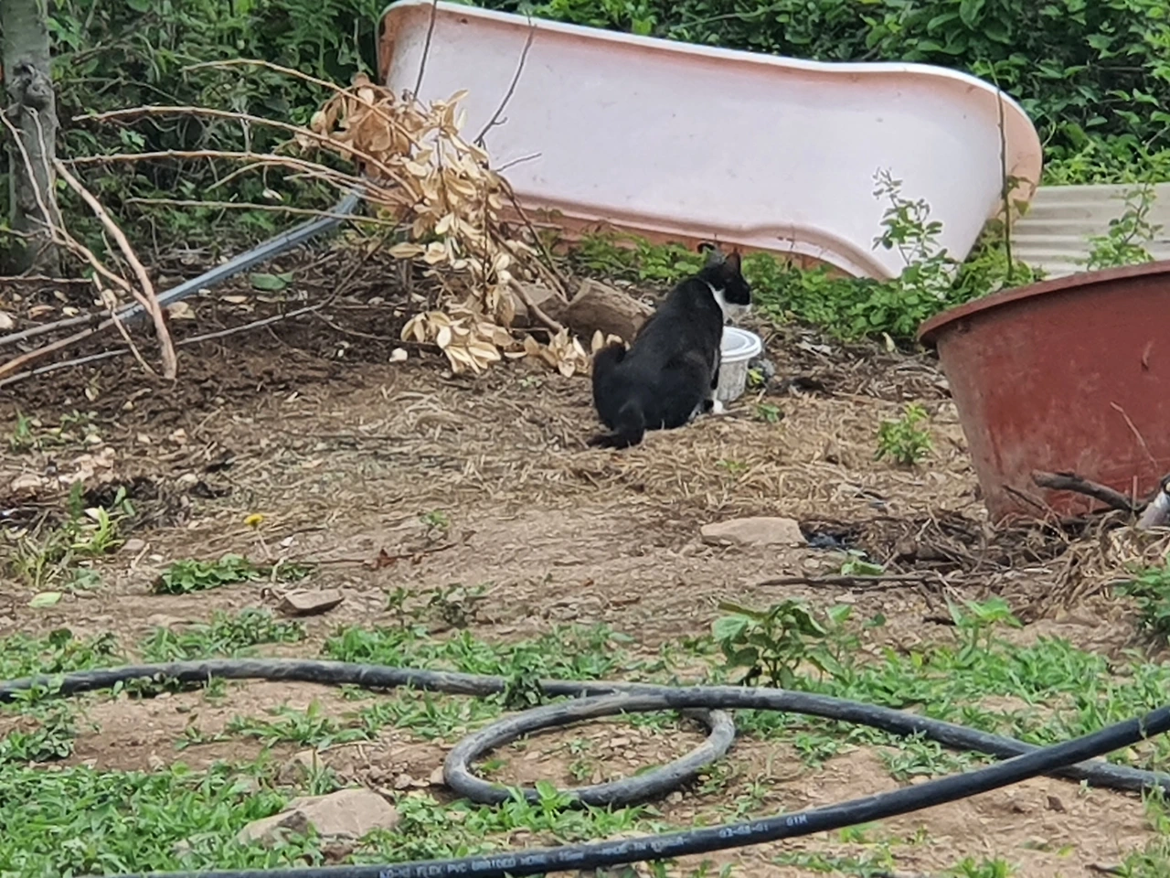 지난봄에 2주 동안 우리 밭 언저리에서 살던 새끼 고양이는 떠나고 어미로 보이는 길고양이 한 마리만 정착했다.