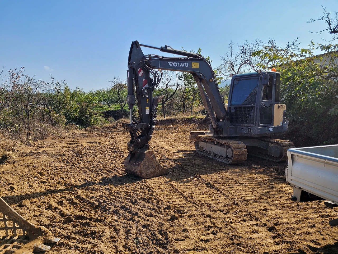 그리고 지난주에 우리 밭에서 농막 제작의 시작을 알리는 포클레인으로 터 다지는 공사가 시작되었다.