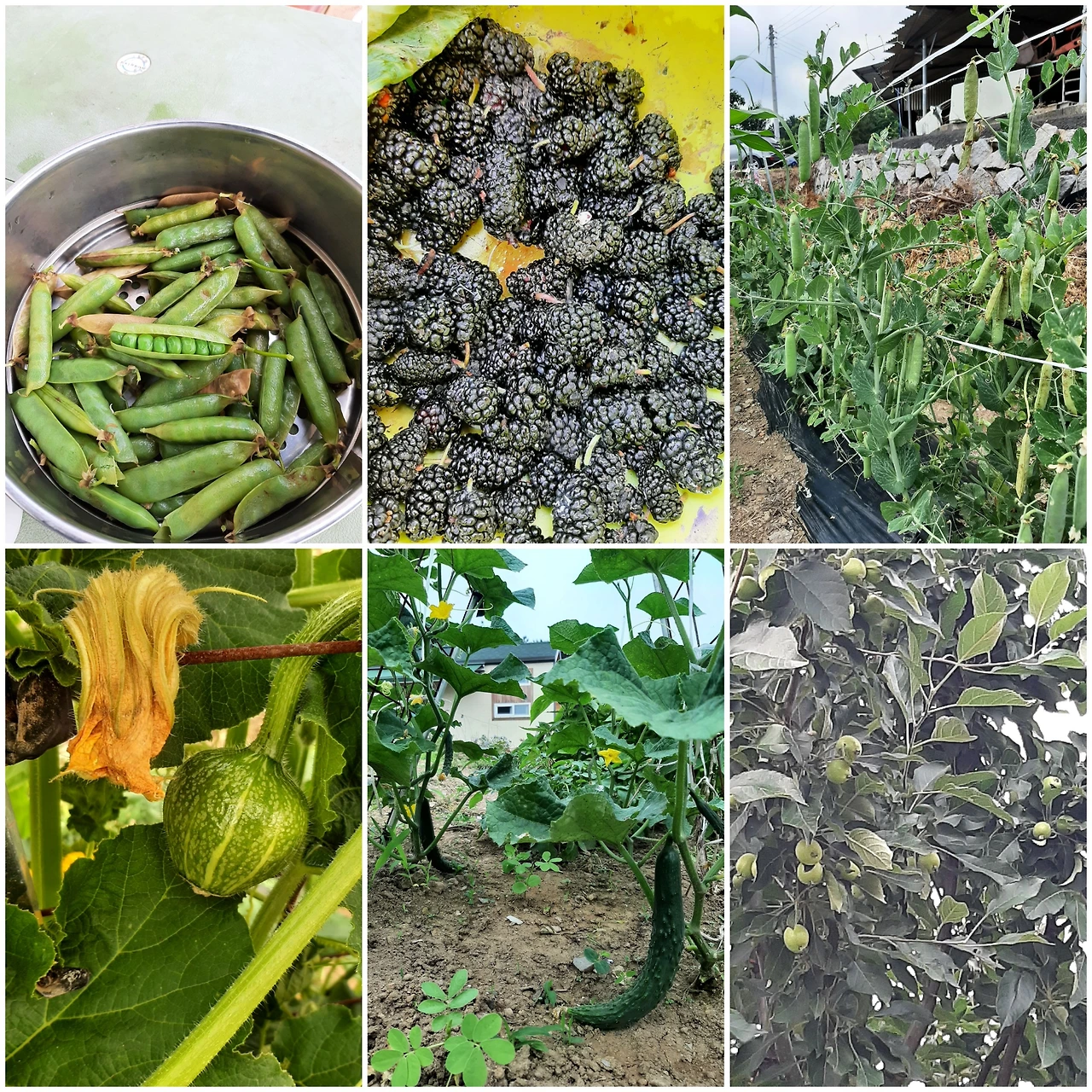 이제 6월 중순인데 벌써부터 밭에서 수확할 작물들이 줄을 섰다. 오이줄기에서는 벌써 먹음직한 가시오이와 백다다기 오이가 두어 개씩 달려 아내와 따서 하나씩 들고 껍질채 먹기도 했다. 신선한 자연의 건강한 맛이 느껴졌다.