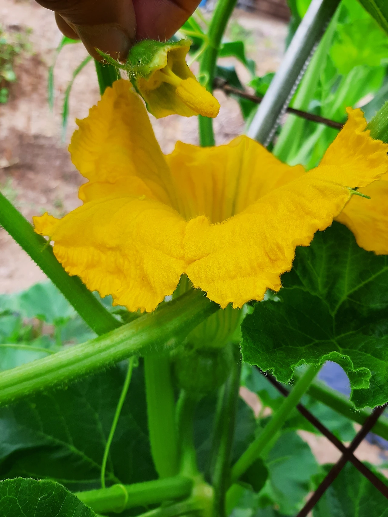 단호박은 벌들이 수꽃에 있는 꽃가루를 암꽃에 옮겨 주는 화분 작업을 제대로 해주어야 영글어 가는 단호박이 줄기에서 떨어지지 않고 끝까지 잘 자란다.