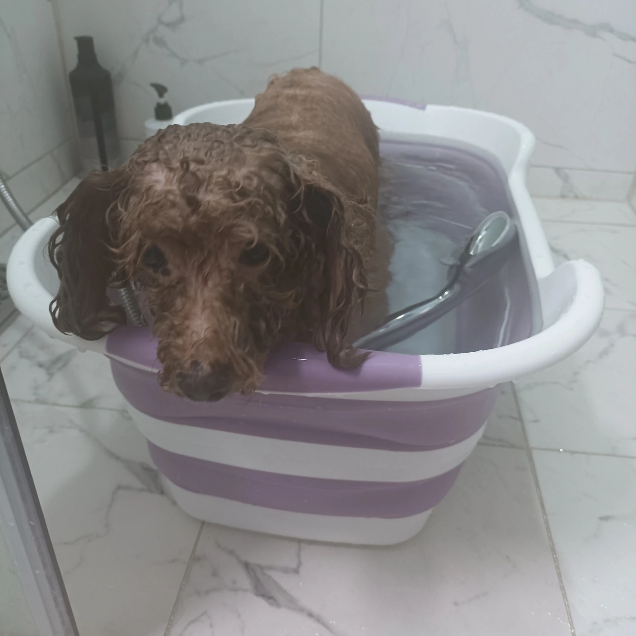 언니는 수건으로 닦고 드라이어로 털이 뽀송뽀송하게 해 주었다.