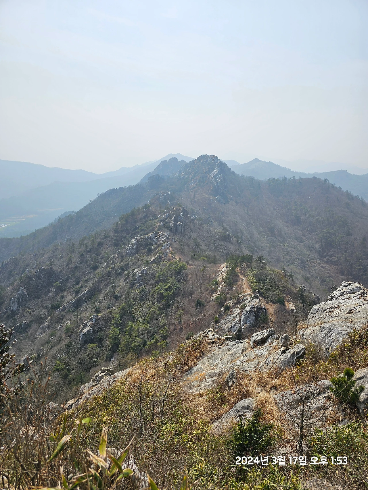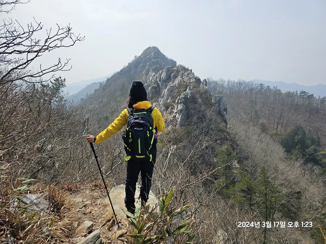 해발 500미터도 채 안 되는 야트막한 산에 넓게 분포한 암릉은 고단함과 위험을 동시에 경고했다.