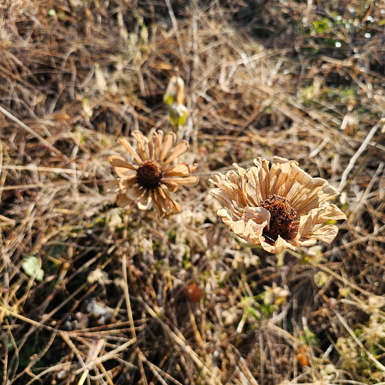 주말 오후 서둘러 도착한 주말 농장에는 서리 맞아 박제된 꽃들이 농막을 지키고 있었다.