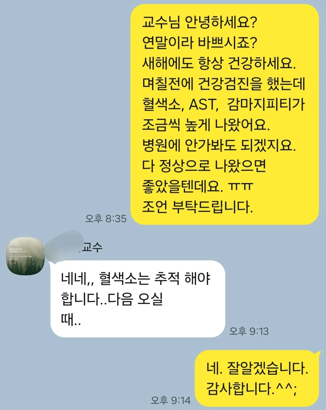 저녁을 먹고 소파에 앉아 뉴스를 보는 데 주치의 선생님의 답톡이 왔다.