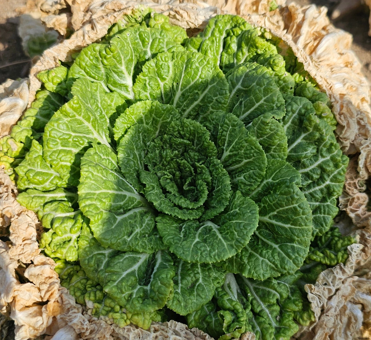지난 초겨울에 부직포로 대충 덮어 놓은 봄동의 부직포를 걷어 냈다.
