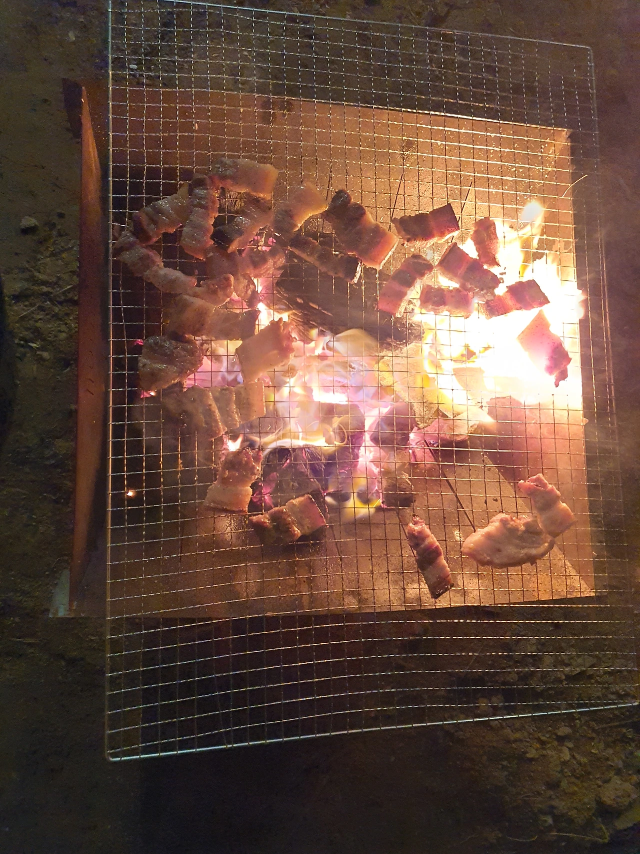 불 맛이 잔뜩 베인 돼지 목살구이에 누구나 '고기가 정말 맛있다'는 찬사를 토해낸다. 나는 속으로 '숯불구이니 어찌 맛이 없겠는가'라고 화답하며 승리자의 미소를 지었다.