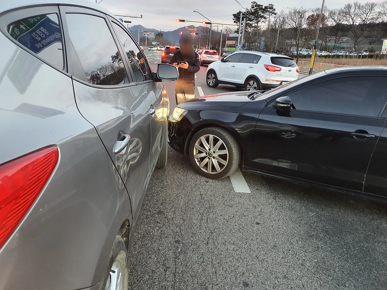 그 순간이었다. 차 측방에서 가벼운 충돌음이 느껴졌다.