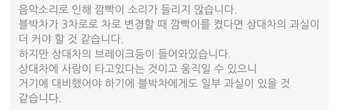 내 차가 갓길 진입 직전에 상대방 차의 브레이크 등이 켜져 있다가 내가 진입하는 시점에 꺼지는 영상을 확인했다.