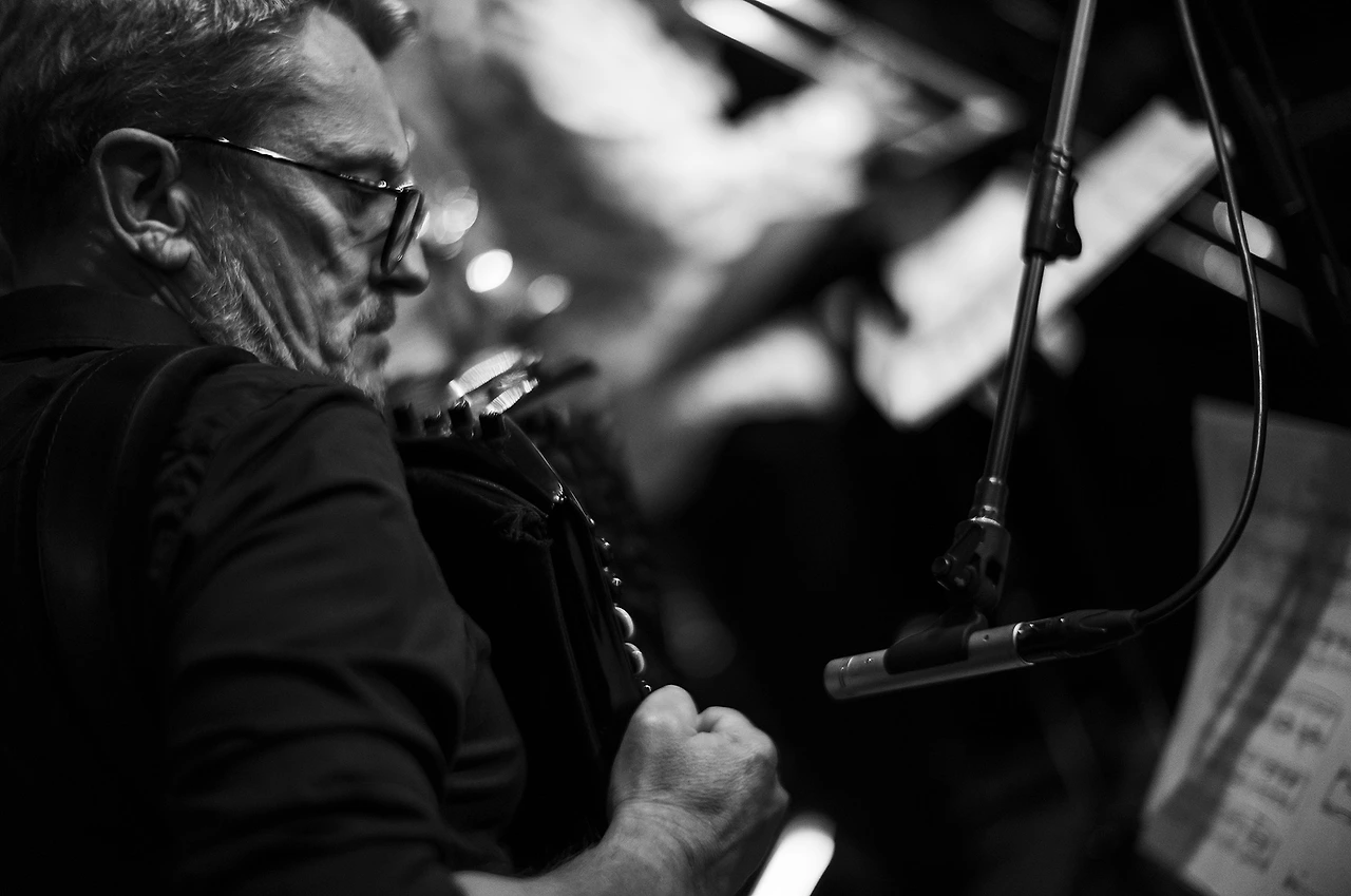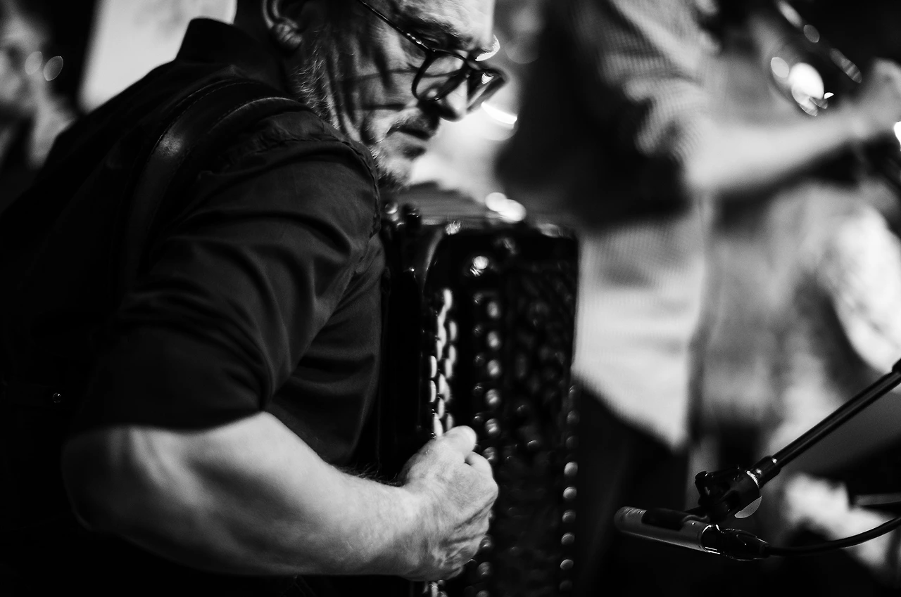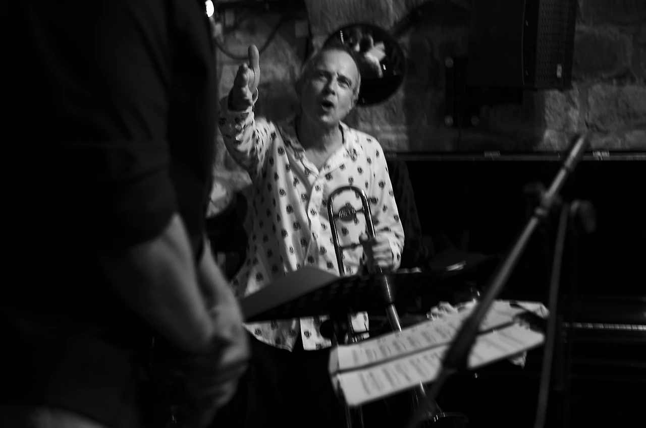 내가 앉은자리는 무척 좁았고 몸을 조금이라도 움직인다는 건 생각도 못할 정도로 옆사람과 붙어 앉았지만 이게 나에게 주어진 최선이라 생각하고 여기서 할 수 있는 만큼 잘 찍겠노라 마음먹었다. 예정된 아홉 시 반이 되자 깨끗하게 잘 다림질한 스타일리시한 꽃무늬가 적당히 들어간 흰색 포플린 셔츠를 입은 중년의 트롬본 연주자이며 팀의 리더인 Gueorgui Kornazov 가 나와서 인사를 하고 트럼펫, 아코디언, 튜바, 드럼으로 짜인 그의 Brass Spirit Stet의 공연이 한 시간 동안 진행되었다.