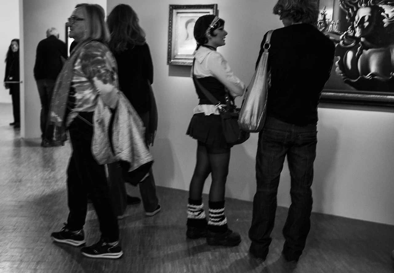 한껏 멋을 내고 새로 사귀는 듯한 남자친구와 미술관에 온 아가씨는 그림 보는 내내 연애하듯 그림 얘기를 하고 있었고 한편에는 커다란 뿔테 안경을 쓴 까만 머리의 키 큰 귀여운 백인 아가씨는 같이 온 남자친구 두 명과 연신 장난을 치며 돌아다니고 있었다. 그들이 우습기도 귀엽기도 했고 그들의 행동이나 옷차림등이 예사롭지도 않아 사진을 한컷 찍었는데 생각보다 재미있게 보여 여학생인 Eva에게 다가가서 말을 걸었다.