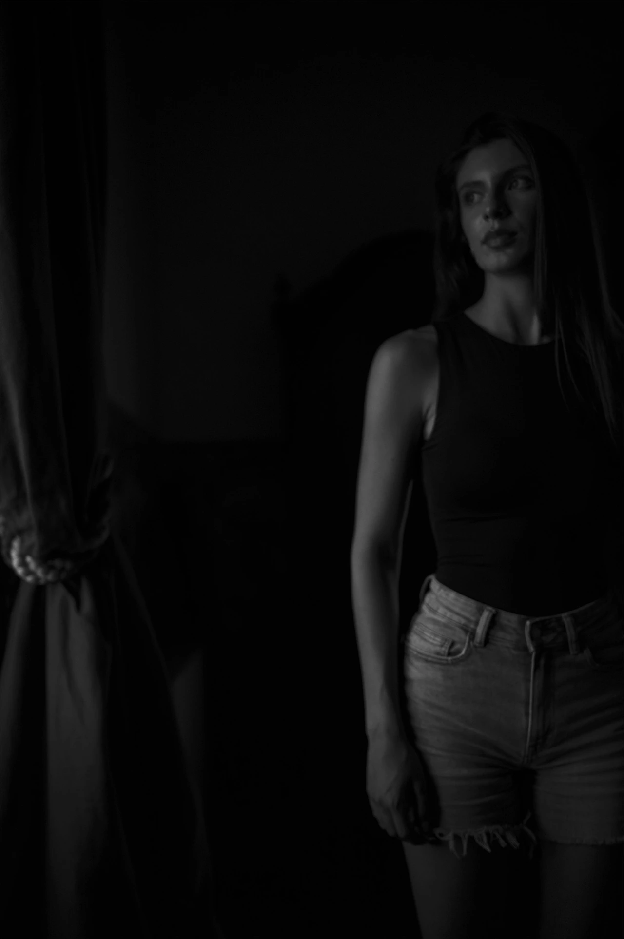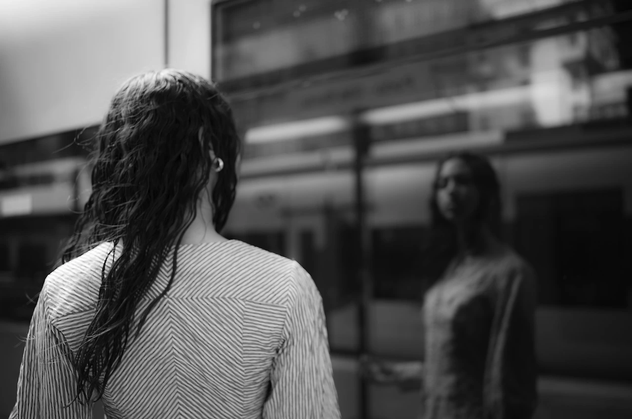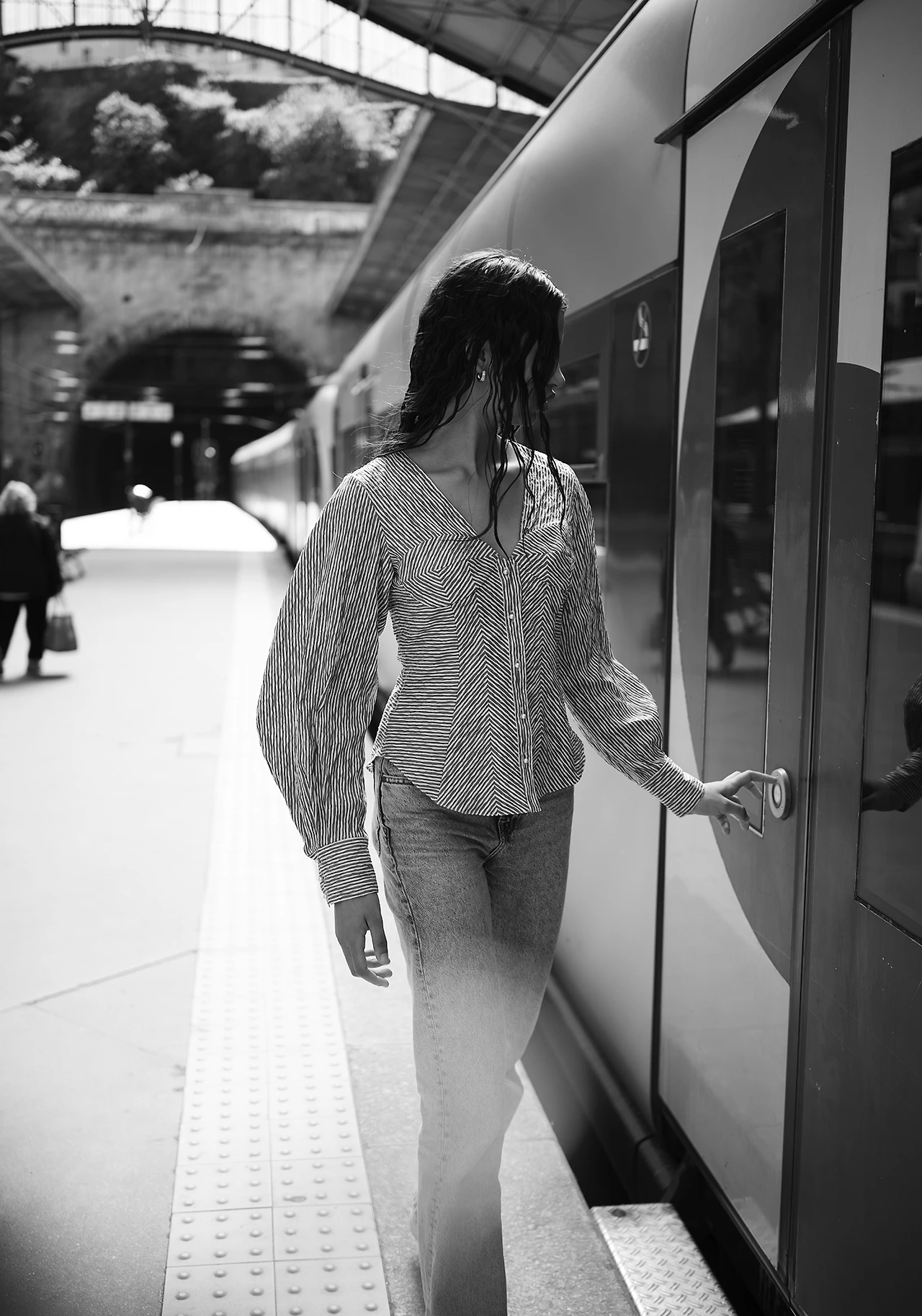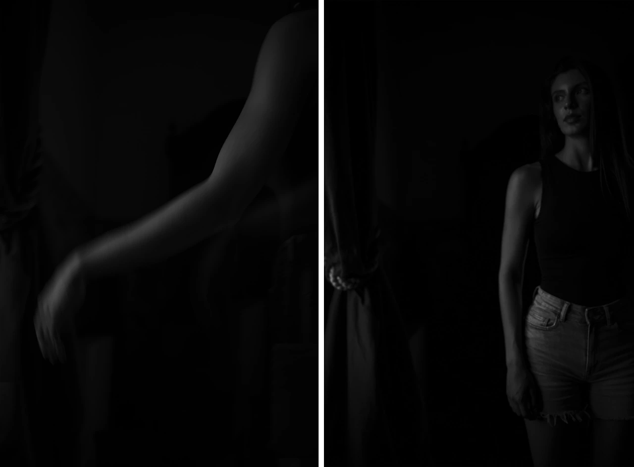 지금 보니 위 왼쪽의 사진을 타이트하게 크롭 한 오른쪽 사진이 가장 마음에 든다. 왼쪽은 그녀의 등과 앞모습으로 포커스가 분산되어 보이지만 오른쪽은 모델의 얼굴에 초점이 맞추어지며 그녀의 흐트러진 마음을 뚫어지게 바라보게 된다.