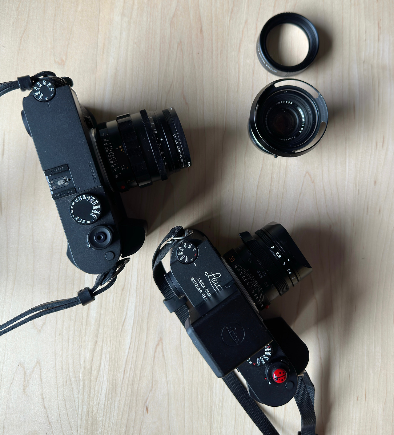 라이카 M11P + 35mm ApoSummicron F2.0 그리고 단독으로 있는 렌즈는 35mm Summilux F1.4 made in Canada, 1970에 만들어진 vintage lens다. 라이카의 유명한 렌즈디자이너였던 Dr. Mandler가 캐나다에 라이카 공장이 있을 때 그곳에서 만든 렌즈들 중 하나이다. Pre-ASPH로 쉽게 말해서 렌즈의 한쪽 가장자리에서 반대편 가장자리까지 거리계산이 정확하지 않아 요즘 나오는 오차 없이 잘 만든 깔끔한 렌즈들 (ASPH 렌즈)보다 역으로 인간의 눈에 더 가깝게 닮은 렌즈 중 하나라고 들었다. (구형경차가 더 높다고 말한다.)