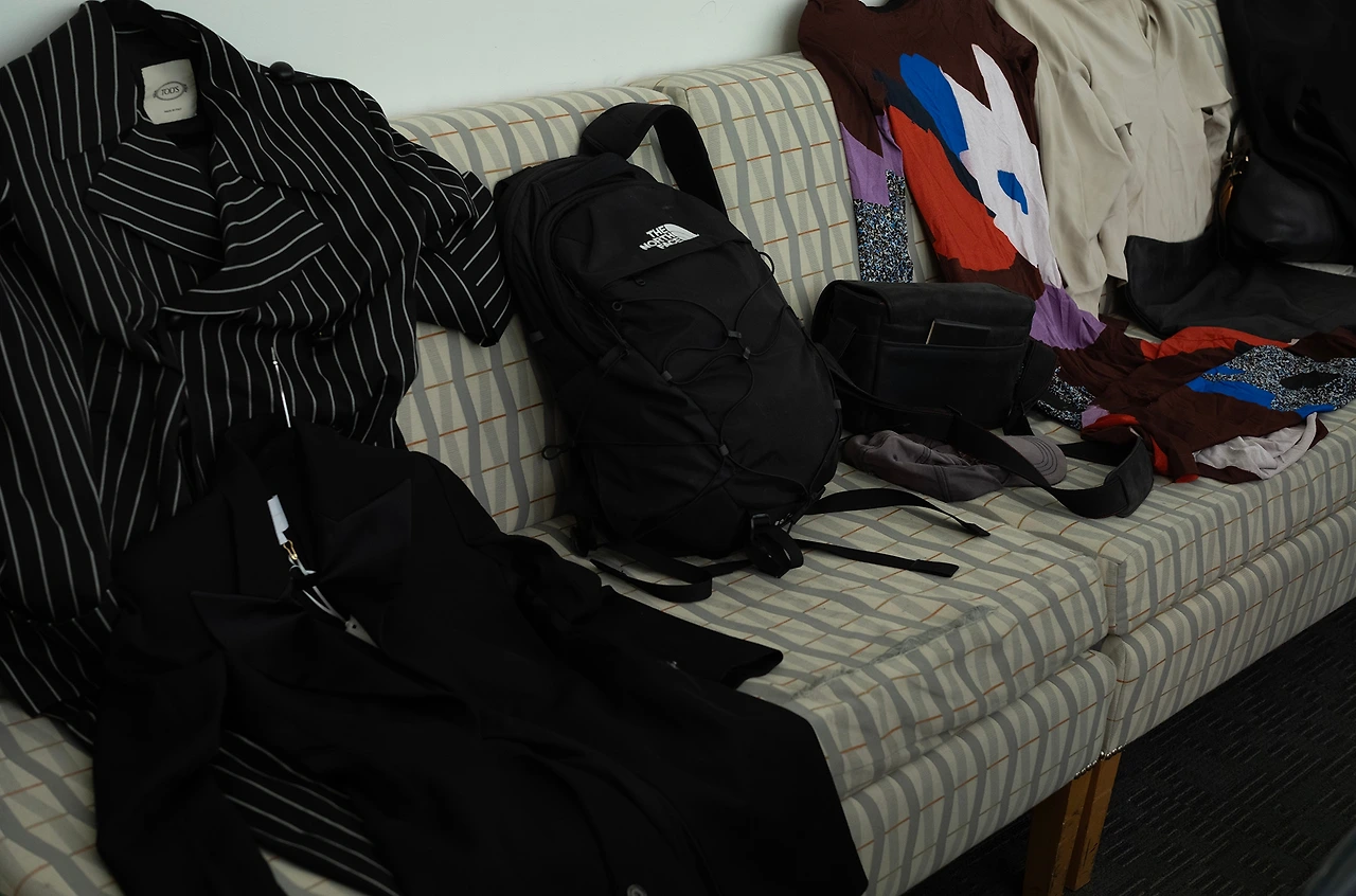 (구슬이 너무 무겁고 거추장스러워 모델은 의자에 못 앉을 거니 그리 알고 있으라는 문자를 받았다. 오른쪽은 의상들)