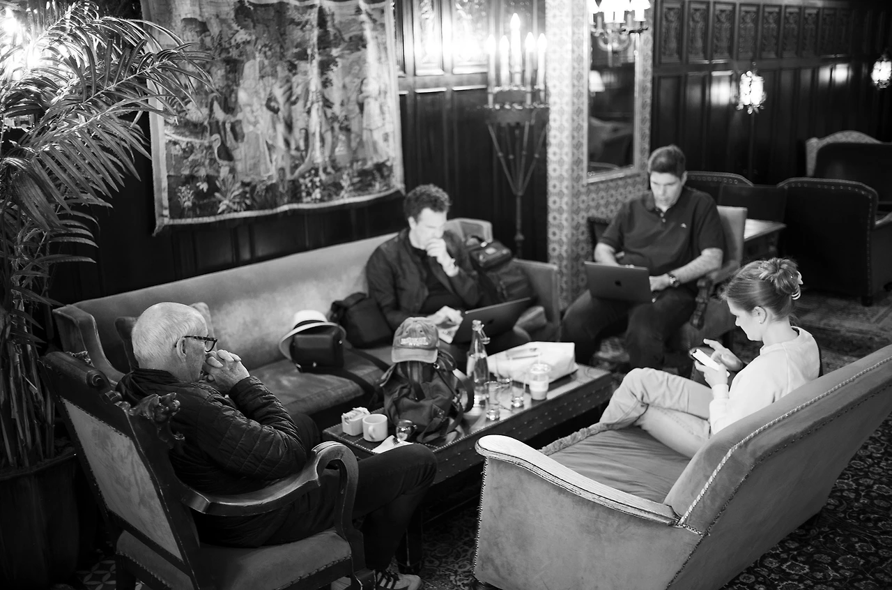 (바워리호텔에서 다음 촬영을 기다리는 모습, 90mm 녹티를 든 H)